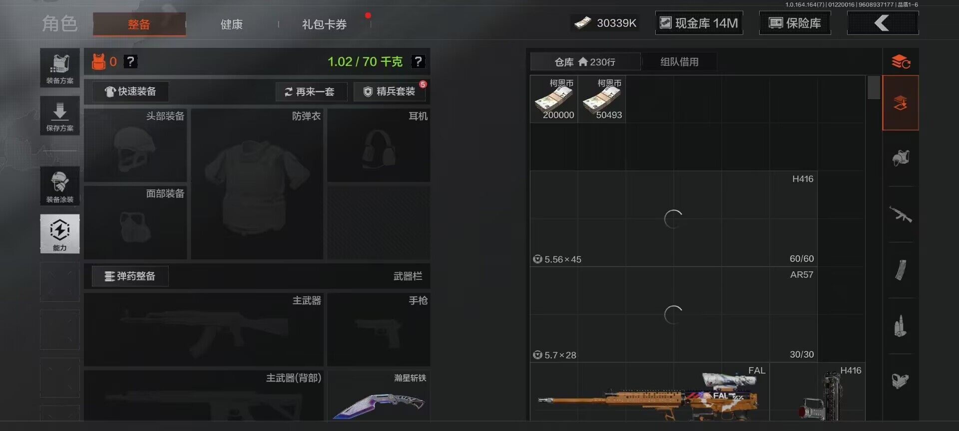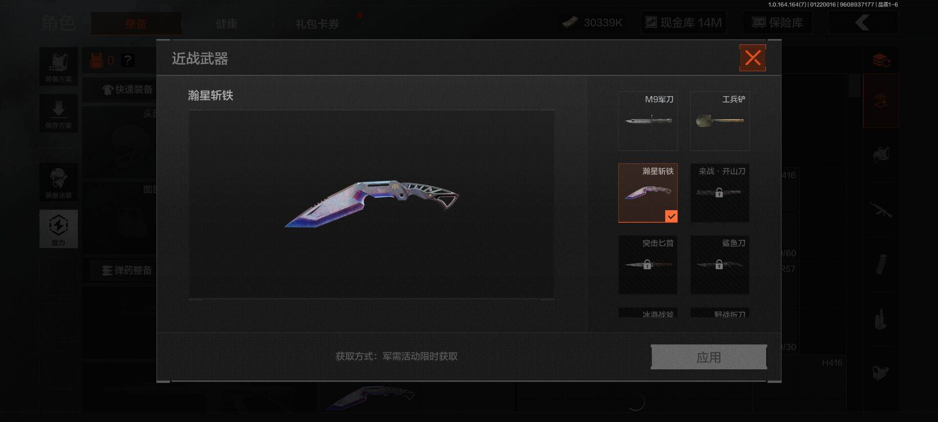 【C262139189】【AQD141】段位:王牌/仓库价值(百万):110/柯恩币:44748785/瀚星斩铁/骑士之剑VSS/旗帜AEK/利齿风暴MPX/告丧夜曲AUG