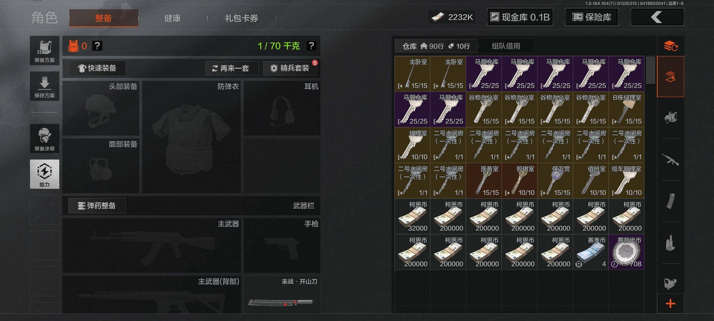 【C262120063】【AQN116】等级:30/段位:王牌/仓库价值(百万):106.2/柯恩币:2232/工兵铲/来战·开山刀/伦琴幻影FAL/蓝色咆哮H416/告丧夜曲AR57/旗帜AEK/冬夜AK12/旧王圣谕QBZ191/钢铁真理QBZ191/利齿风暴MPX/旧王圣谕VSS/骑士之剑VSS/骑士之剑AX50