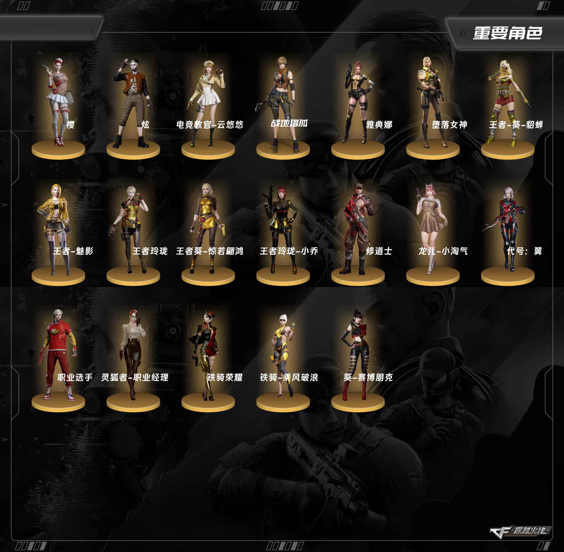 铁骑-乘风破浪,职业选手,职业经理,电竞教官-云悠悠,王者葵-惊若翩鸿,王者玲珑-小乔,炫,王者玲珑,王者-魅影,王者-葵-貂蝉,堕落女神,雅典娜,樱