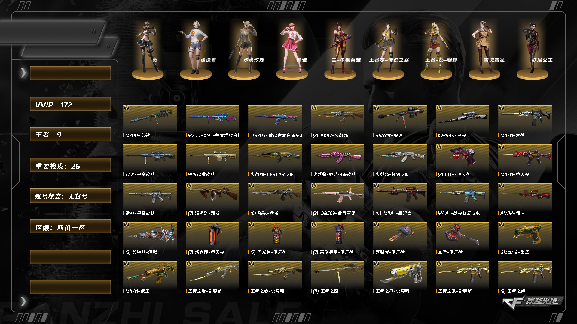 【C262156998】[15902606]TD9760/西部/四川一区/钱包未注销/可排位/可二次/172V/掌火ID:746395383/【幻神三件套+金色蔷薇三件套+6盘6烈】/幻神/幻神音效卡/幻神荣耀世冠白鲨/星神/裁决/6盘龙/6烈龙/炼狱迷你小钢/斯泰尔蝴蝶/炽芒蝶刃/堕天神套/QBZ金色蔷薇/金色蔷薇音效卡/QBZ荣耀世冠白鲨/白虎电玩蓝兔/天龙毁灭/极光/黑骑士/雷神/火麒麟/黑龙/【四防已开】/王者葵貂蝉/【四防未开】/兰巾帼英雄/沙漠玫瑰/雪域霜狐/晴雅/【音效卡】/毁灭音效卡/黑骑士音效卡/雷神音效卡/火麒麟音效卡/永久AC/细节看图