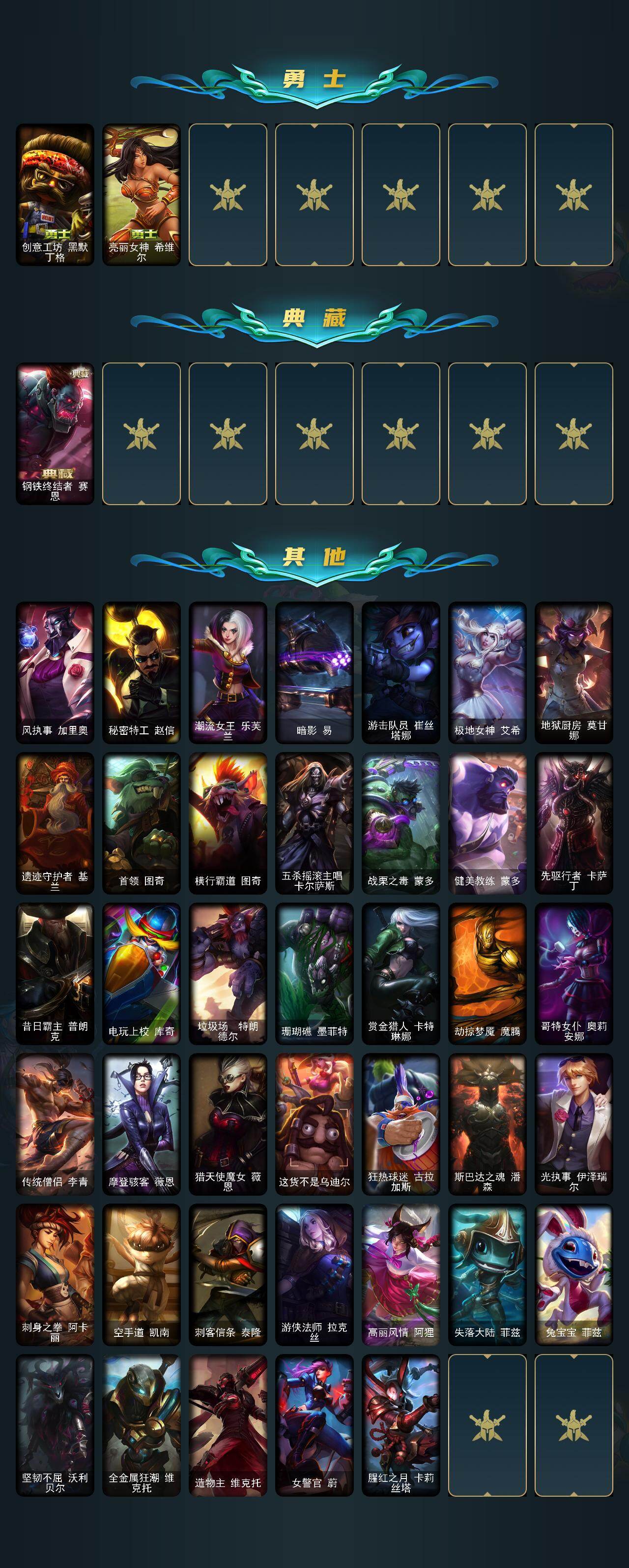 【C262375747】【LOLYH1079】147英雄/122皮肤/1神话/25限定/12传说/40史诗/未定级/卡特琳娜的匕首/觅心游侠卢锡安/神龙烈焰金克丝/幸福女神乐芙兰/圣诞精灵崔丝塔娜/圣诞狂欢努努和威朗普/阿木木“主人不要我了”/英勇玩具兵普朗克/夺命美人卡特琳娜/喜庆之树茂凯/十周年纪念安妮/钢铁军团拉克丝/诺斯费拉图弗拉基米尔/创星之灵璐璐/冠军之刃锐雯/冠军典狱长锤石/冠军之刃锐雯2016/暗杀星蒙多/SKTT1薇恩/电玩勇者锐雯/胜利女神莫甘娜/胜利女神希维尔/灵魂收割者索拉卡/泳池派对雷克顿/野兽猎人德莱文/红桃杰克崔斯特/防暴机器人布里茨/防暴天使凯尔/源计划林易/提莫约德尔人的一大步/源计划联合艾希/电玩女神娑娜/女主播迦娜/红色男爵库奇/炼狱魔犬内瑟斯/死亡骑士盖伦/黯黑魔龙希瓦娜/泳池派对吉格斯/金牌主播德莱文/霸天异形卡兹克/冰霜烈焰安妮/科学怪熊的新娘安妮/腥红之月崔斯特/铁钩船长费德提克/圣光审判凯尔/月光女神阿忒弥斯索拉卡/圣洁化身索拉卡/兔宝宝提莫/狼外婆沃里克/火牙狼人沃里克/侏罗纪化石科加斯/全金属狂潮拉莫斯/武动巅峰萨科/穿着正装的恶魔维迦/抵抗军天使凯特琳/前线指挥官卡特琳娜/腥红之月伊莉丝/斗战胜佛孙悟空/至高之拳李青/法老王朝内瑟斯/艳后奈德丽/银色之牙阿卡丽/刺客信条凯南/钢铁烈阳蕾欧娜/战地机甲克格莫/ODST地狱伞兵拉克丝/海牛猎手菲兹/暗黑武士雷恩加尔/驯龙女巫璐璐/铁血帝皇德莱厄斯/天启骑士杰斯/亚特兰蒂斯辛德拉/萌侦探喵尔摩斯/源计划风亚索/腥红之月亚索/源计划阴劫/爵士克烈/时之砂艾克/腥红之月锤石/上古战魂雷克塞/创意工坊黑默丁格/亮丽女神希维尔/钢铁终结者赛恩/风执事加里奥/秘密特工赵信/潮流女王乐芙兰/暗影易/游击队员崔丝塔娜/极地女神艾希/地狱厨房莫甘娜/遗迹守护者基兰/首领图奇/横行霸道图奇/五杀摇滚主唱卡尔萨斯/战栗之毒蒙多/健美教练蒙多/先驱行者卡萨丁/昔日霸主普朗克/电玩上校库奇/垃圾场特朗德尔/珊瑚礁墨菲特/赏金猎人卡特琳娜/劫掠梦魇魔腾/哥特女仆奥莉安娜/传统僧侣李青/摩登骇客薇恩/猎天使魔女薇恩/这货不是乌迪尔/狂热球迷古拉加斯/斯巴达之魂潘森/光执事伊泽瑞尔/刺身之拳阿卡丽/空手道凯南/刺客信条泰隆/游侠法师拉克丝/高丽风情阿狸/失落大陆菲兹/兔宝宝菲兹/坚韧不屈沃利贝尔/全金属狂潮维克托/造物主维克托/女警官蔚/腥红之月卡莉丝塔