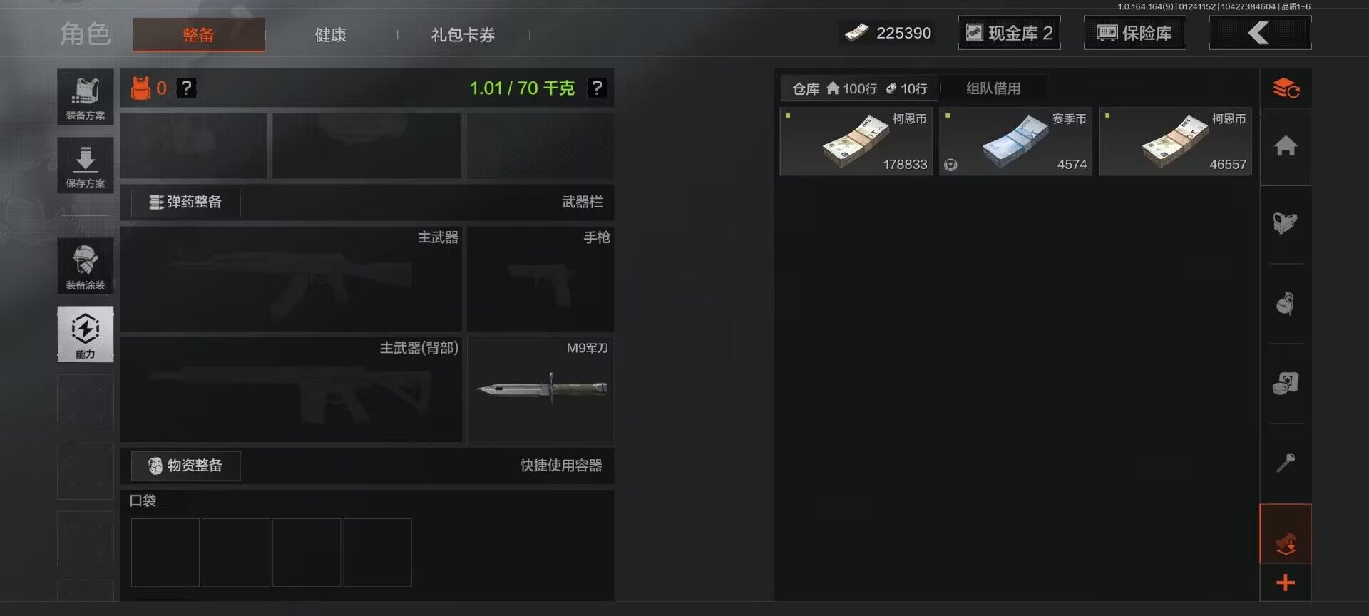 【C262311341】【AQZG1062】等级:30/段位:暗区传说/仓库价值(百万):3.4/柯恩币:225390/冥河/深潜行者II