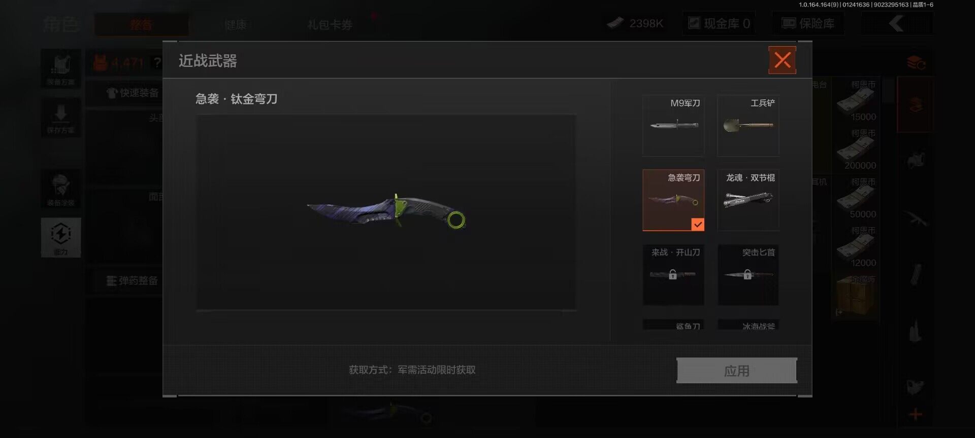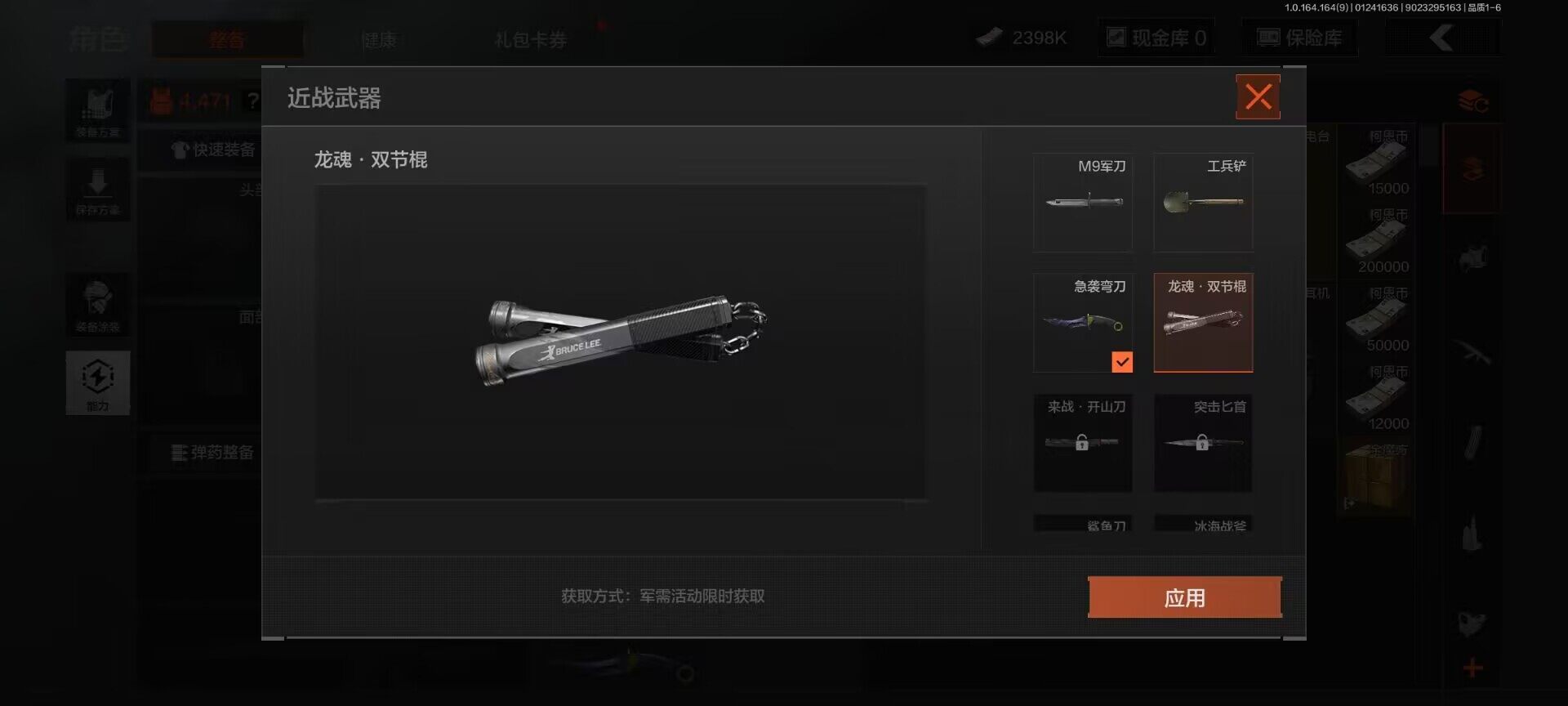 【C262316303】【AQZG1067】等级:30/段位:新锐/仓库价值(百万):12.2/柯恩币:2398000/急袭弯刀/龙魂·双截棍/龙魂武术运动服