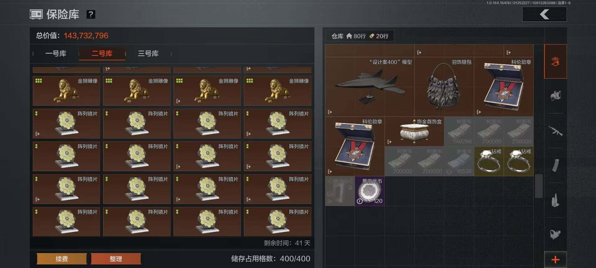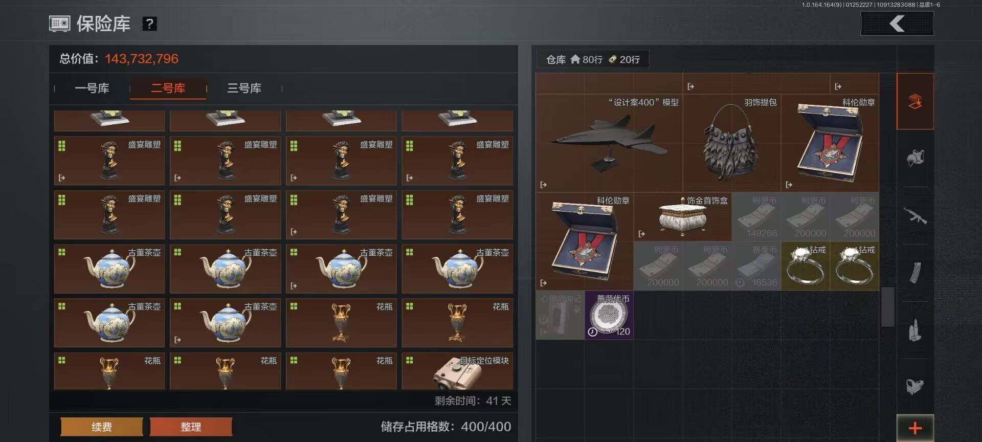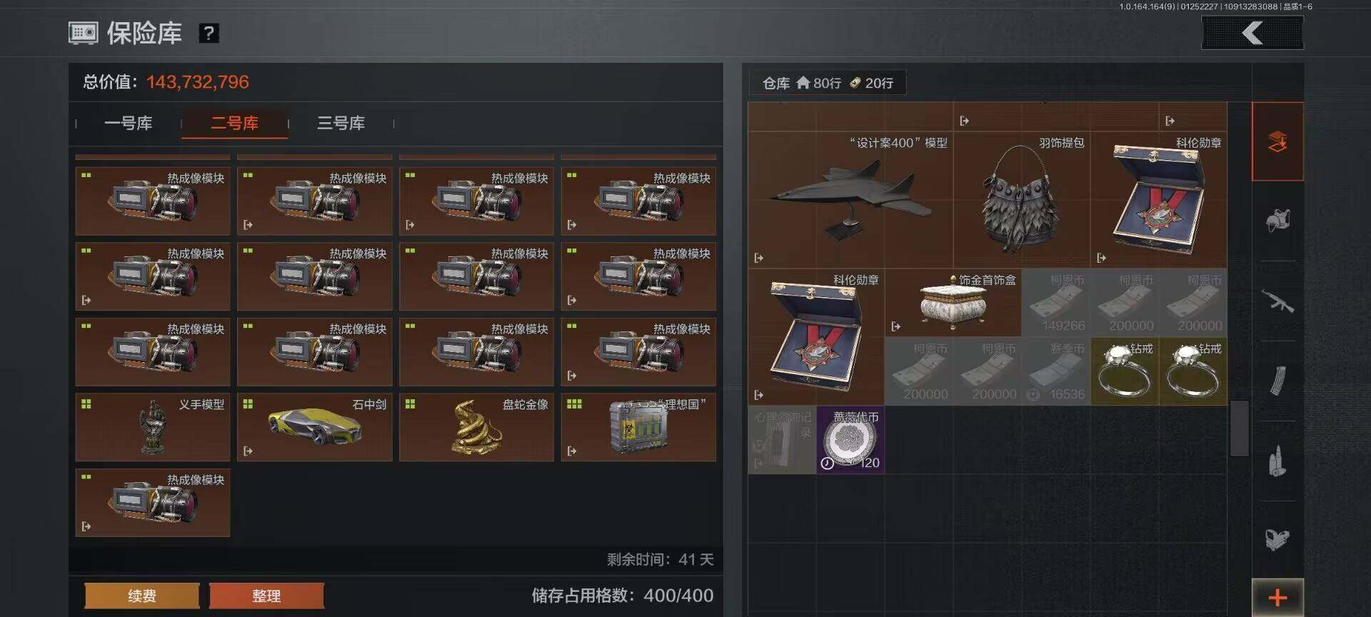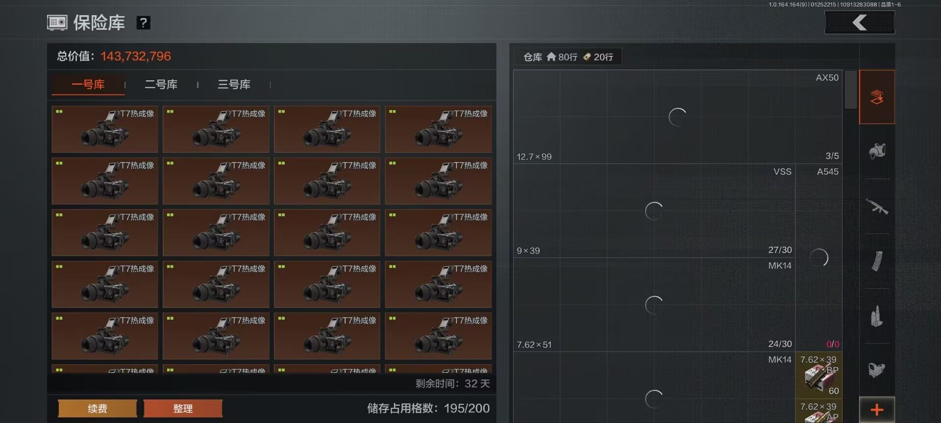 【C262413431】【AQD156】等级:30/段位:暗区传说/仓库价值(百万):369.4/柯恩币:101813499/T7热成像/“理想国”试剂盒/热成像模块/金狮子/盘蛇金像/盛宴雕塑/茶壶/花瓶/噤声者作战手套/赢家匕首/热能武器补牢/苍穹利爪/收割者/百炼恒常/下弦月/胜利军刀/脉冲马克西姆/使徒欧瑞恩/骑士之剑VSS/旧王圣谕QBZ191/告丧夜曲AR57/骑士之剑AX50/利齿风暴MPX/战术大师AEK/战术大师AN94/旗帜AEK/地脉深处FAL/告丧夜曲AUG