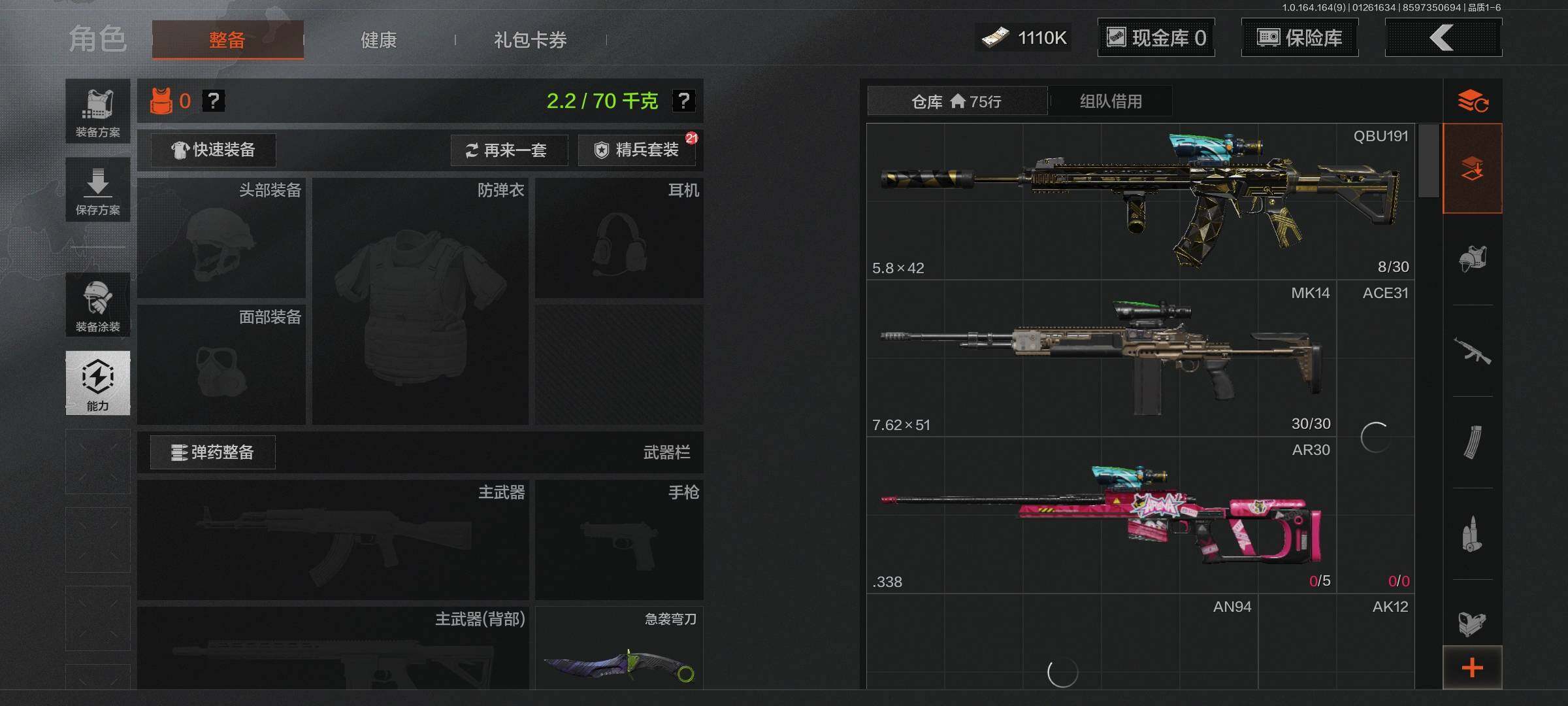 【C262510067】【AQZG1077】等级:30/段位:暗区传说/仓库价值(百万):5.7/柯恩币:1110000/急袭弯刀/旗帜AEK/棱光裂变QBU191