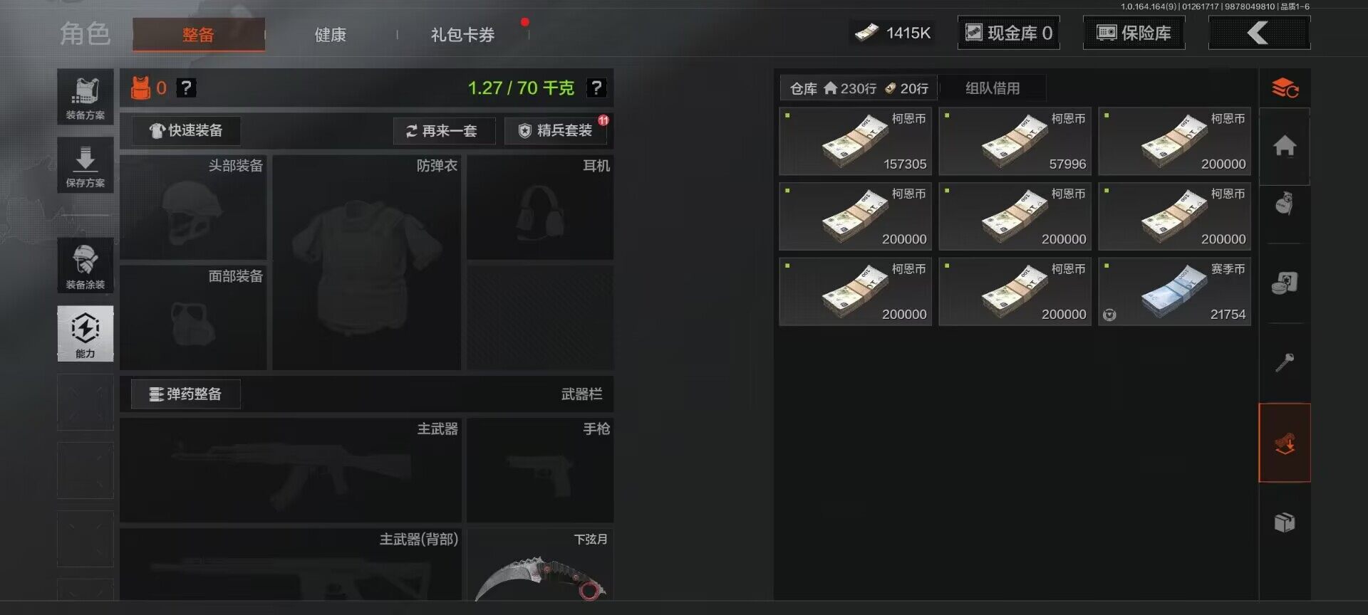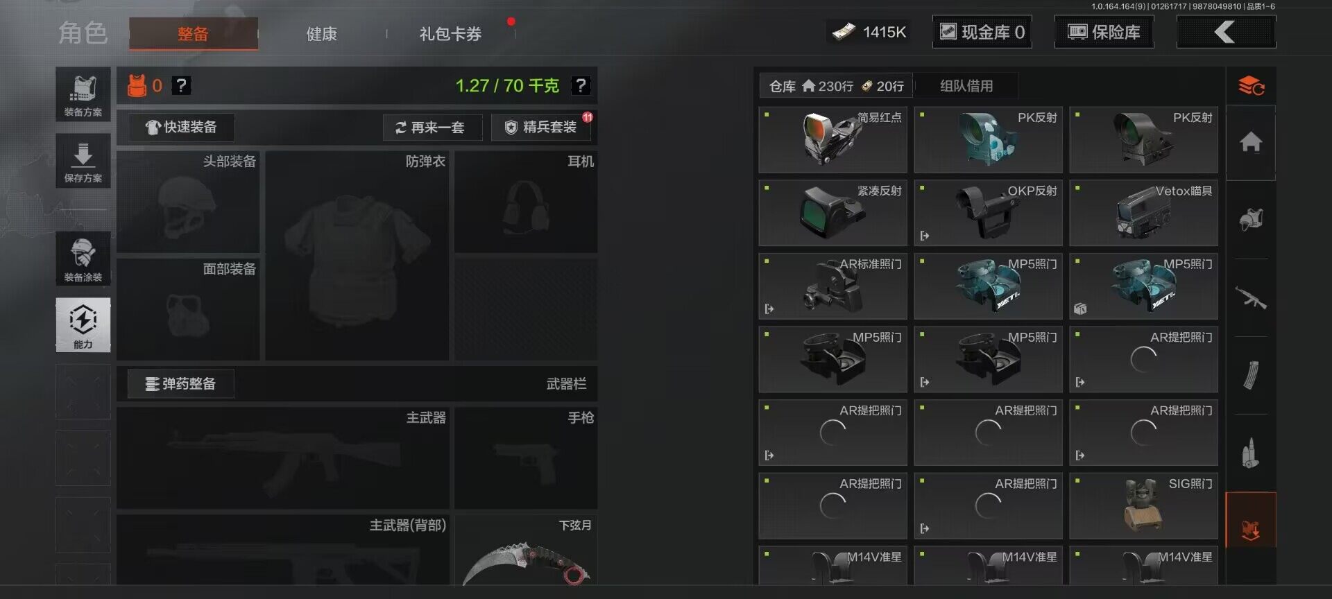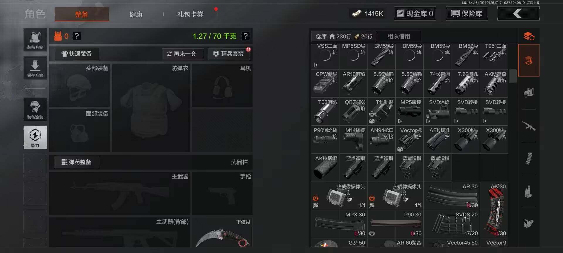 【C262556517】【AQZG1080】等级:30/段位:王牌/仓库价值(百万):7.6/柯恩币:1415000/野战折刀/下弦月/胜利军刀/工兵铲/来战·开山刀/白蔷薇斯黛拉/蓝色咆哮H416/旧王圣谕VSS/旗帜AEK/旧王圣谕QBZ191