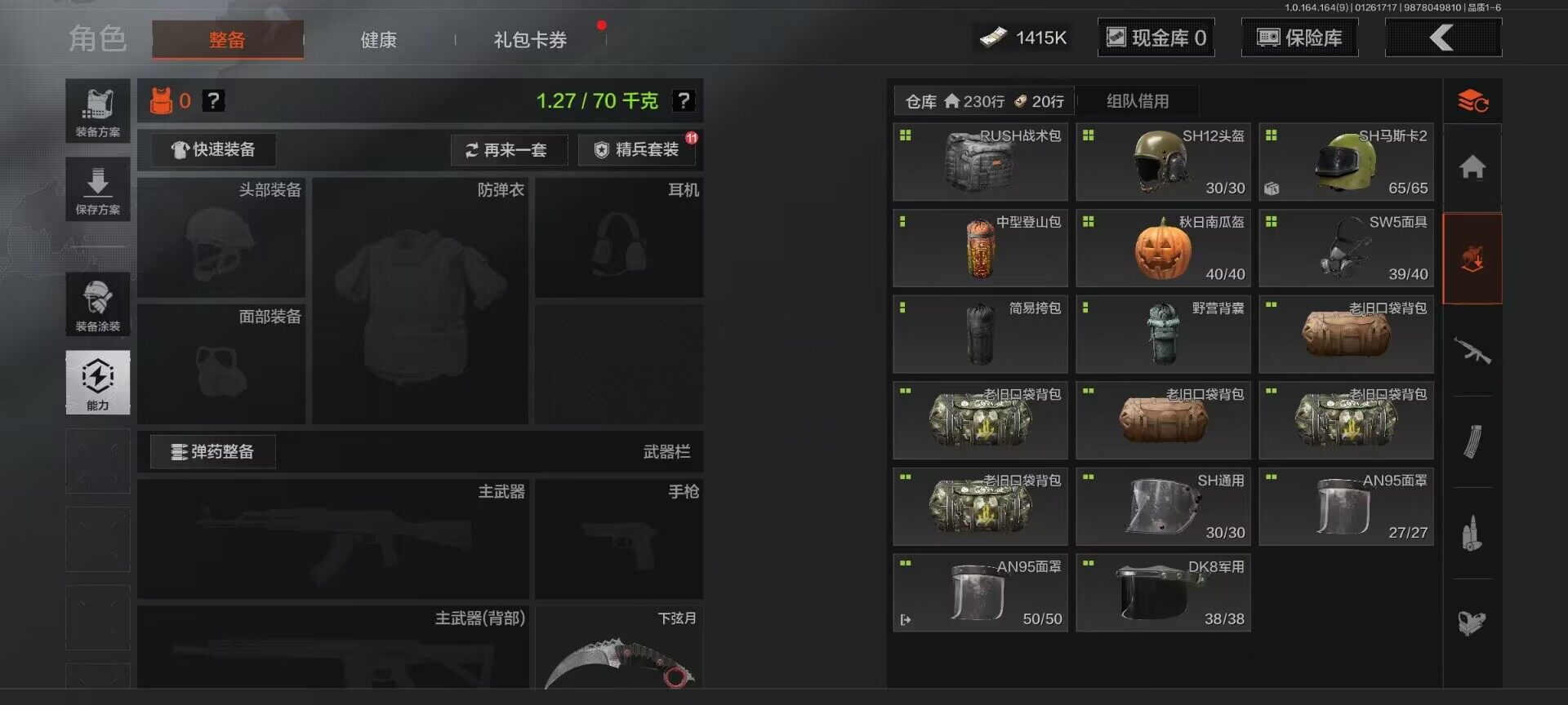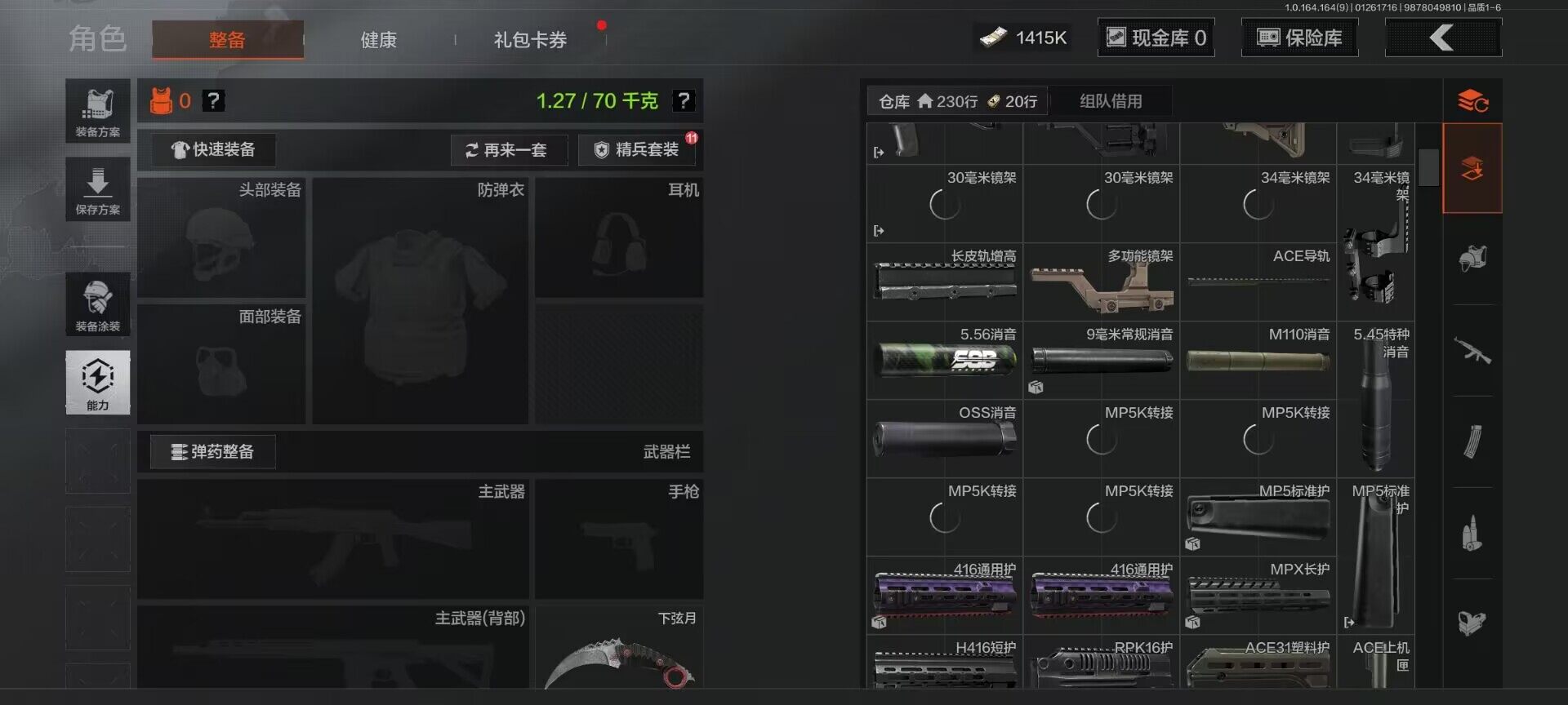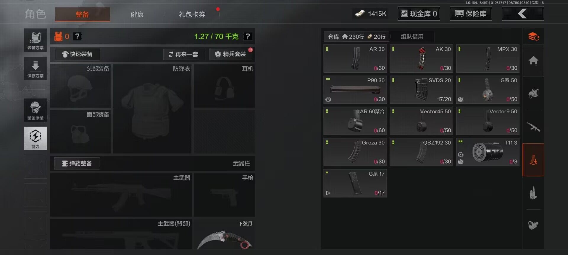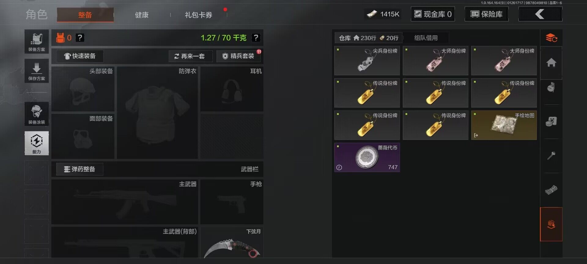 【C262556517】【AQZG1080】等级:30/段位:王牌/仓库价值(百万):7.6/柯恩币:1415000/野战折刀/下弦月/胜利军刀/工兵铲/来战·开山刀/白蔷薇斯黛拉/蓝色咆哮H416/旧王圣谕VSS/旗帜AEK/旧王圣谕QBZ191