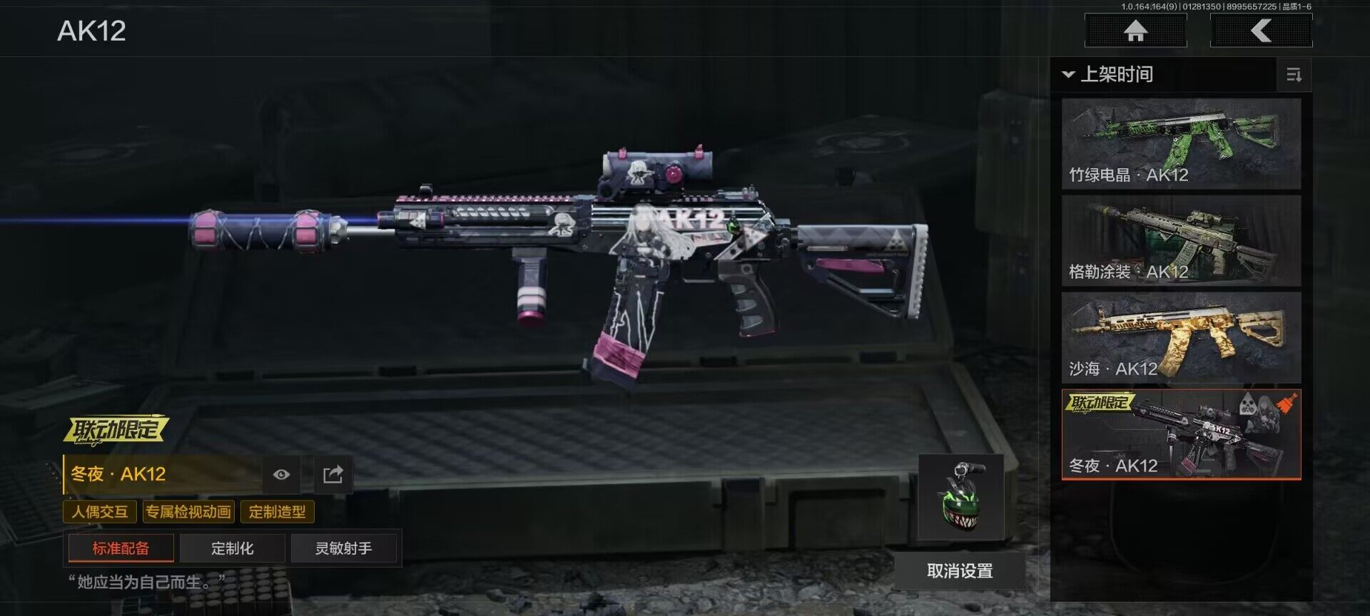 【C262704511】【AQD175】段位:大师/仓库价值(百万):24/收割者/苍穹利爪/热能武器补牢/火绒塔莉娅/脉冲马克西姆/白蔷薇斯黛拉/棱光裂变QBU191/蓝色咆哮H416/浮鳞影青QBZ192/伦琴幻影FAL/告丧夜曲AR57/旧王圣谕VSS/伦琴幻影AX50/战术大师AEK/旧王圣谕QBZ191/利齿风暴MPX/告丧夜曲AUG/冬夜AK12