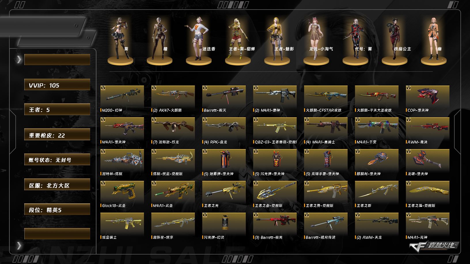 【C263199934】[16288975]LC8154/北部/北方大区/可排位/101v/6烈龙/幻神/QBZ王者蔷薇/觉醒版/堕天神套装/COP堕天神/王者之势/觉醒版/【四防角色】/王者葵貂蝉/王者魅影/【角色】/葵/迷迭香/瞳/蛇隐宗/【音效卡】/黑骑士音效卡/火麒麟音效卡/【枪皮】/雷神烈虎/黑骑士白马银枪/黑骑士摸金校尉/擎天秘银/【王者】/王者之影/王者火魄/王者之光/王者之锋/王者之击/【炫金】/炫金骑士【小人枪】/朱雀蛇隐宗/巴雷特零水下丽影/永久AC/有过十年记录/找回包赔