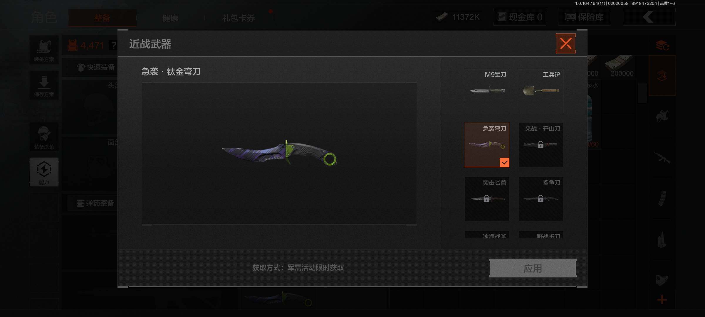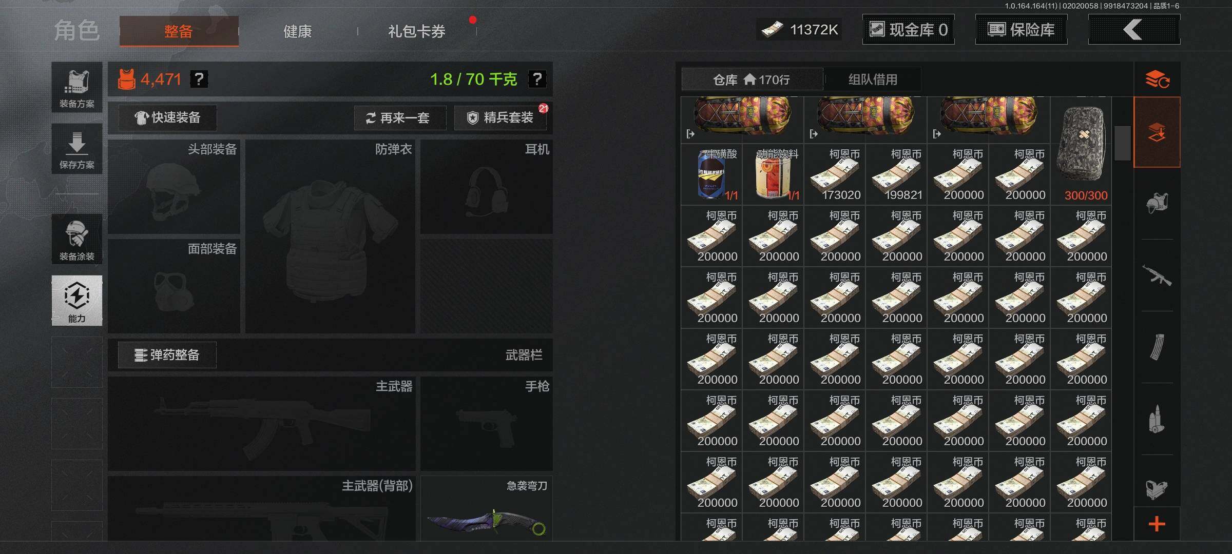 【C263216887】【AQZG1146】段位:暗区传说/仓库价值(百万):11.8/柯恩币:11372000/急袭弯刀/竞技FAL