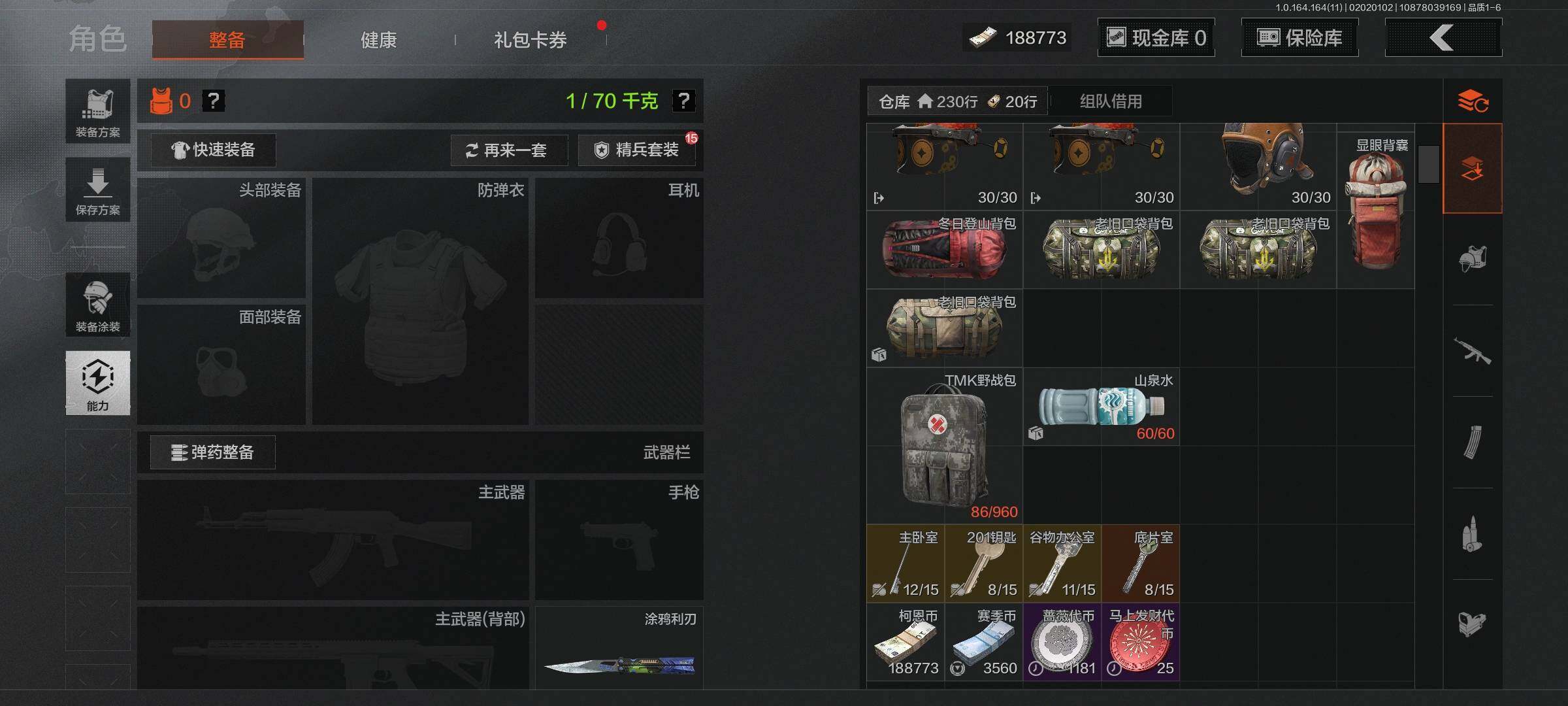 【C263297201】【AQZG1145】等级:30/段位:暗区传说/仓库价值(百万):1.5/柯恩币:188773/冬日手套/涂鸦利刃/棱光裂变QBU191/冰河碎影MK14/旧王圣谕VSS/利齿风暴MPX/浮鳞影青QBZ192/旗帜AEK/告丧夜曲AUG/竞技FAL