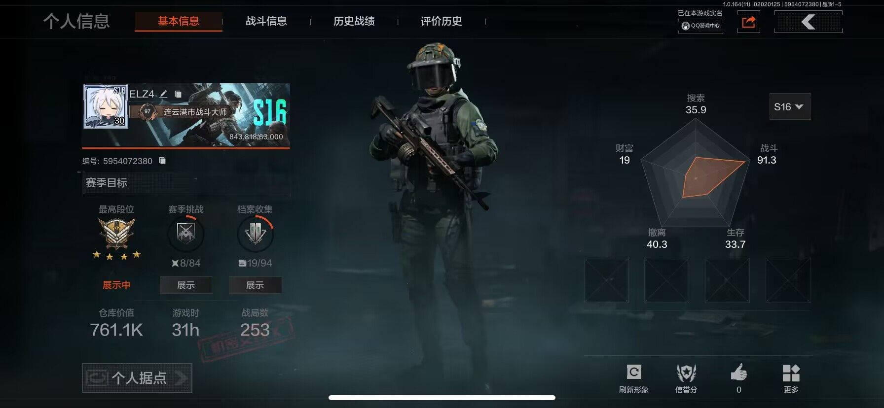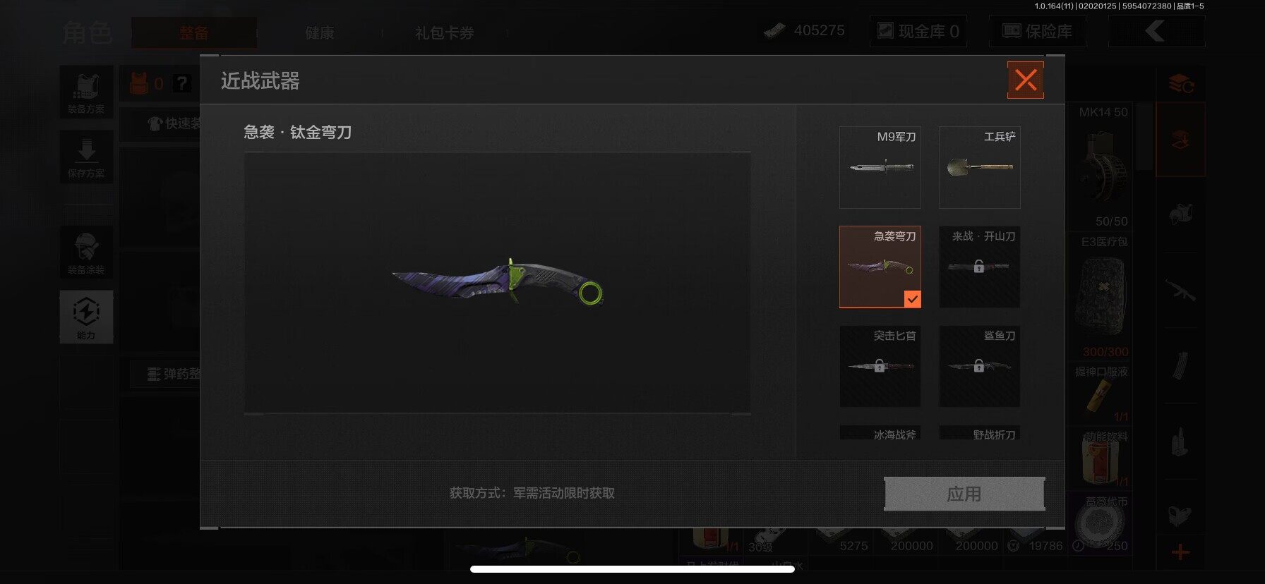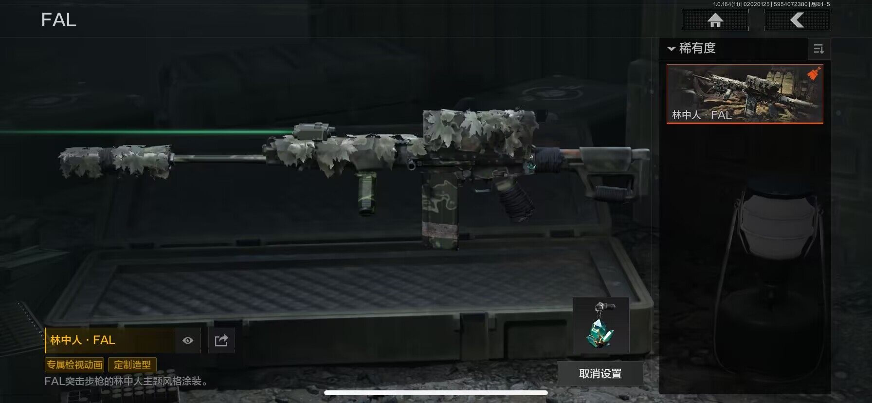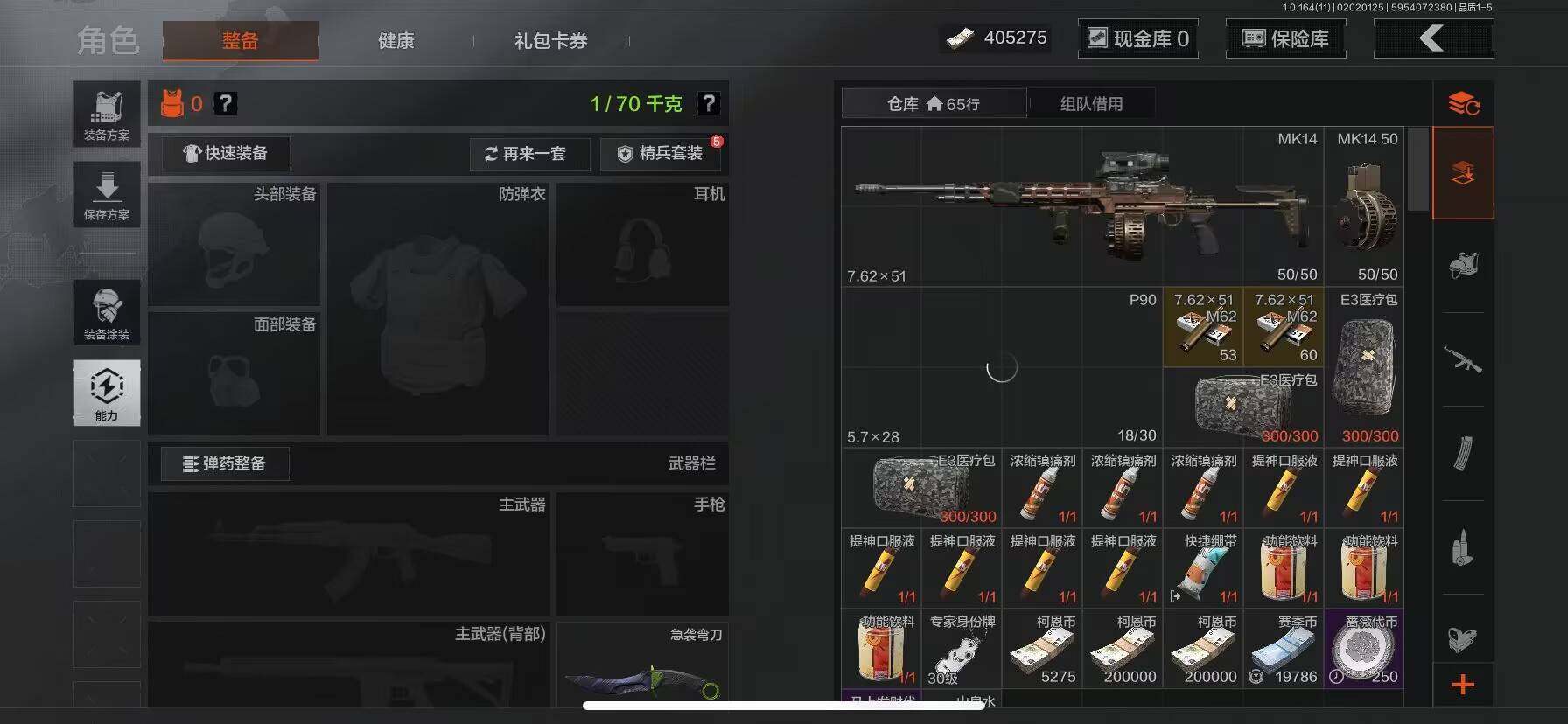【C263264374】【AQZG1142】等级:30/段位:暗区传说/柯恩币:405275/急袭弯刀/林中人·FAL