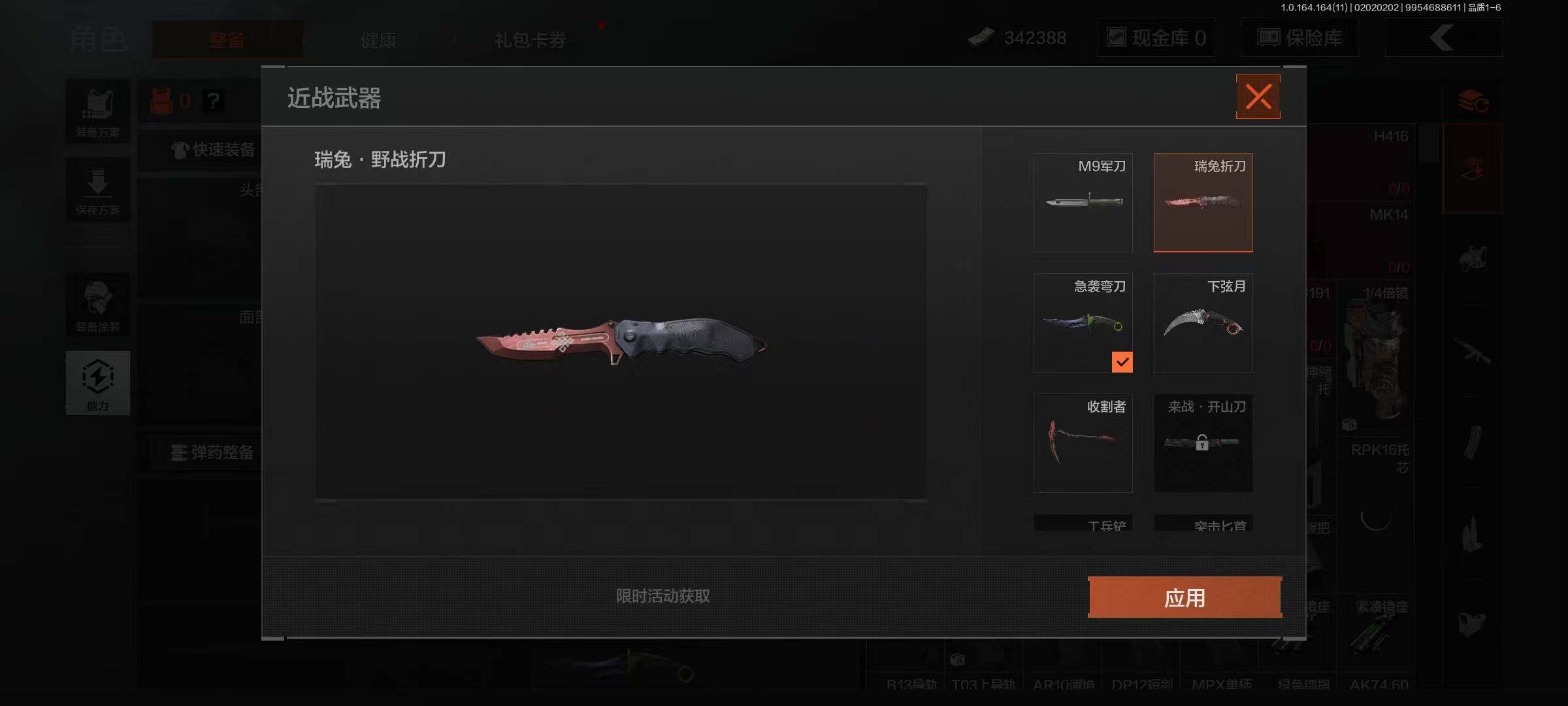 【C263278821】【AQQH372】段位:王牌/仓库价值(百万):1/瑞兔折刀/急袭弯刀/下弦月/收割者/危崖魅影作战服/使徒欧瑞恩/黑卡蒂