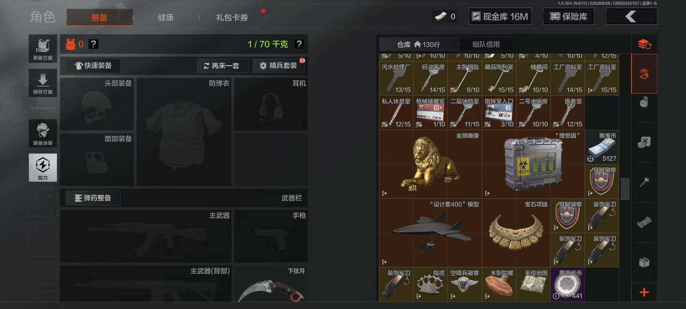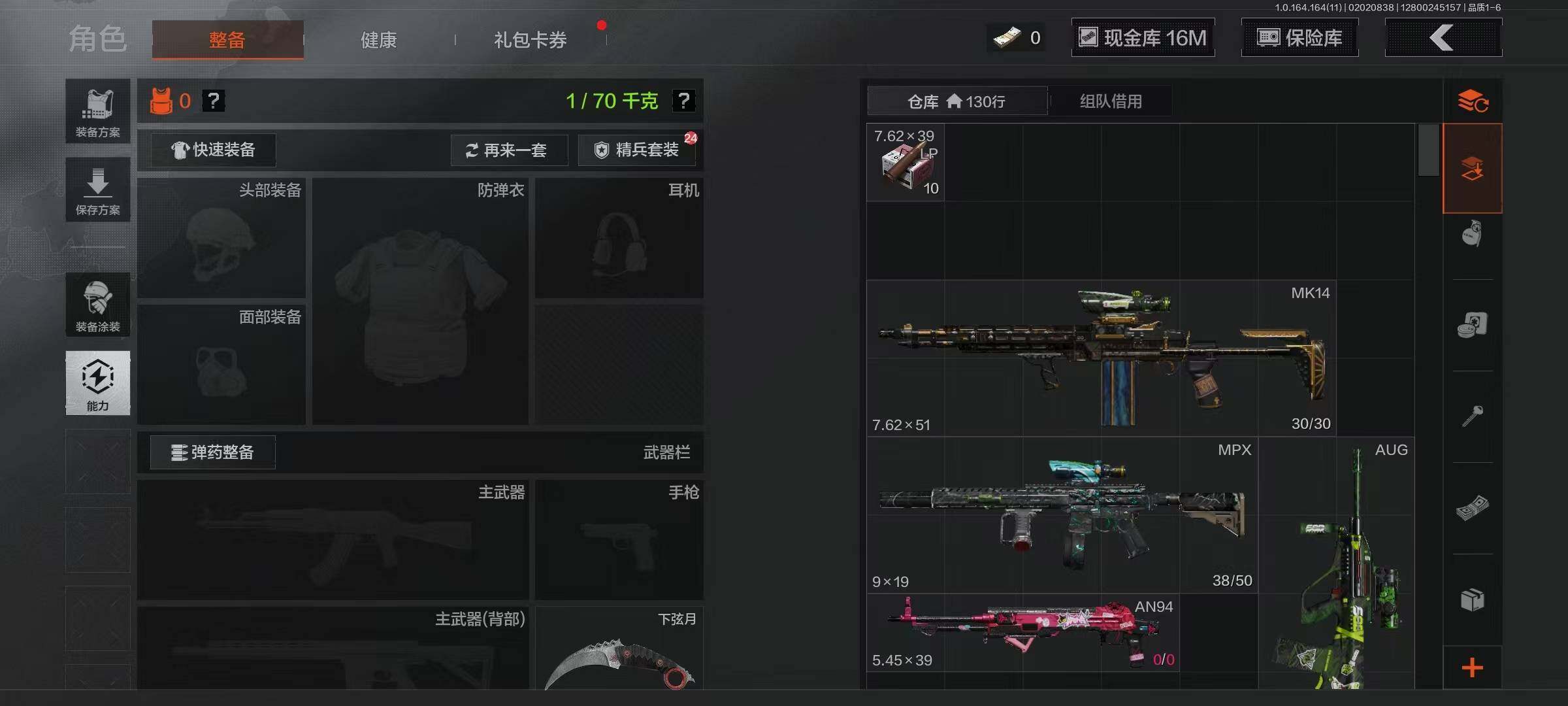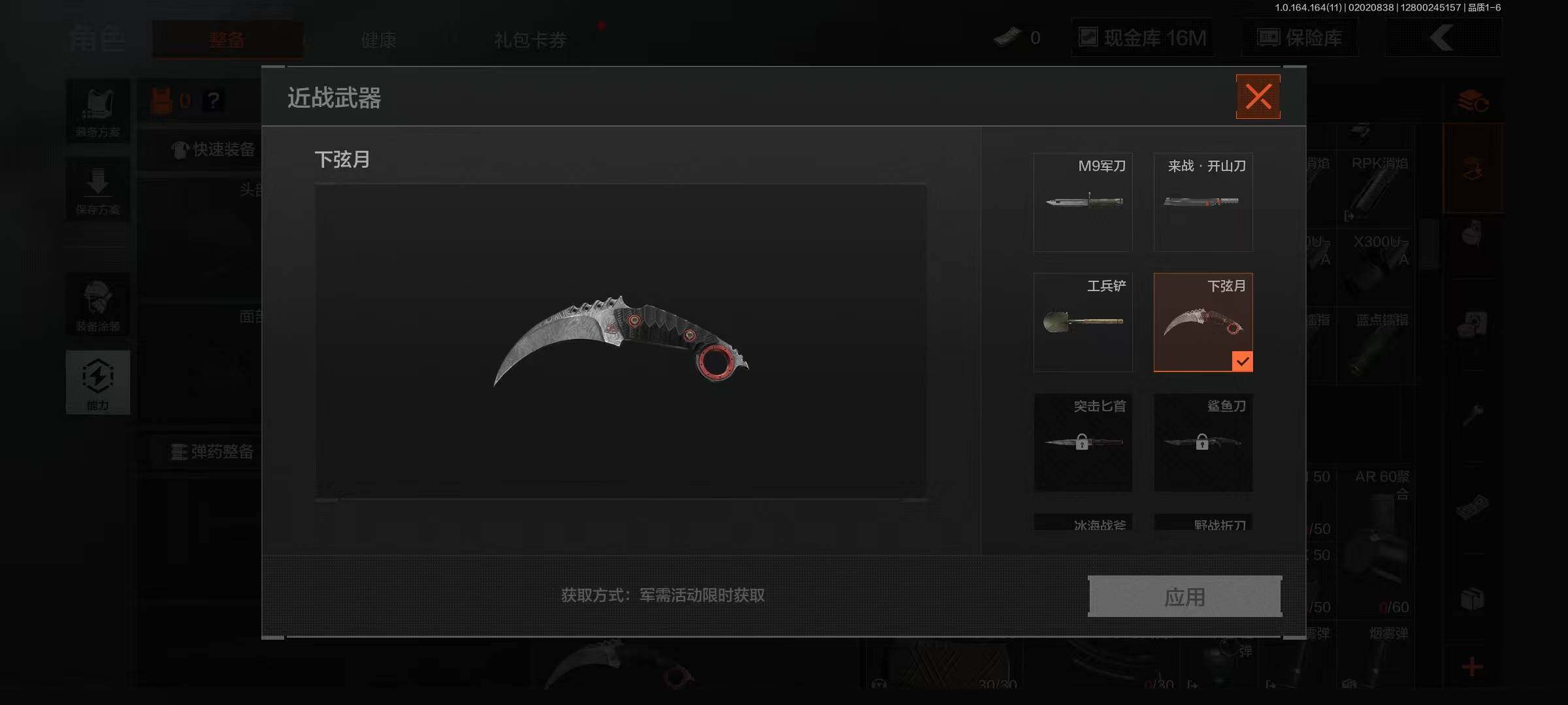 【C263260642】【AQZG1134】等级:30/段位:王牌/仓库价值(百万):30/柯恩币:16805389/下弦月/工兵铲/来战·开山刀