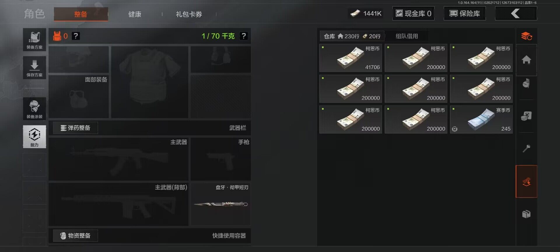 【C263297383】【AQZG1154】等级:30/段位:王牌/仓库价值(百万):1/柯恩币:1441000/盘牙彻甲短刃/芭斯特