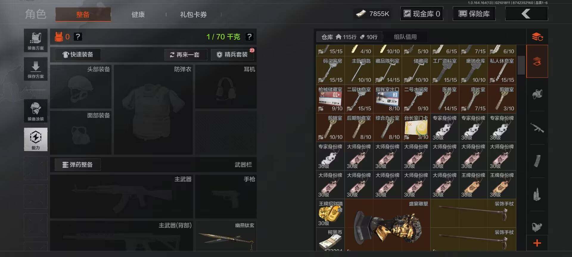 【C264076046】【AQZG1279】等级:30/段位:大师/仓库价值(百万):28.1/柯恩币:7855/幽燕钛玄/工兵铲/告丧夜曲AUG