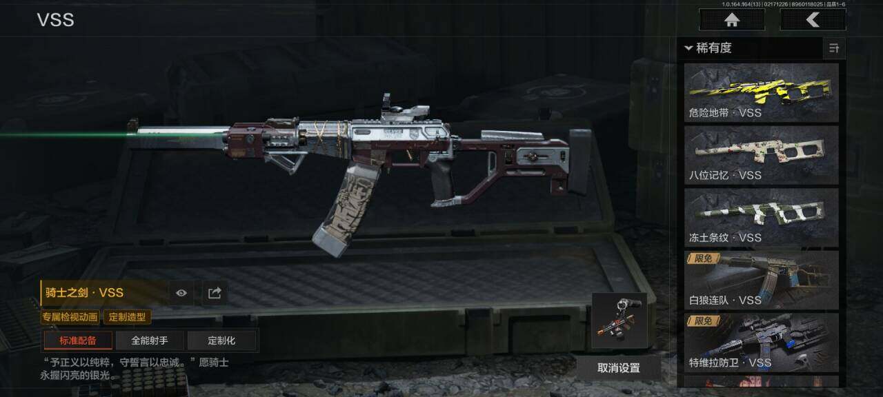 【C264796748】【AQQH545】段位:王牌/NOCs-7折刀/工兵铲/来战·开山刀/骑士之剑AX50/骑士之剑VSS