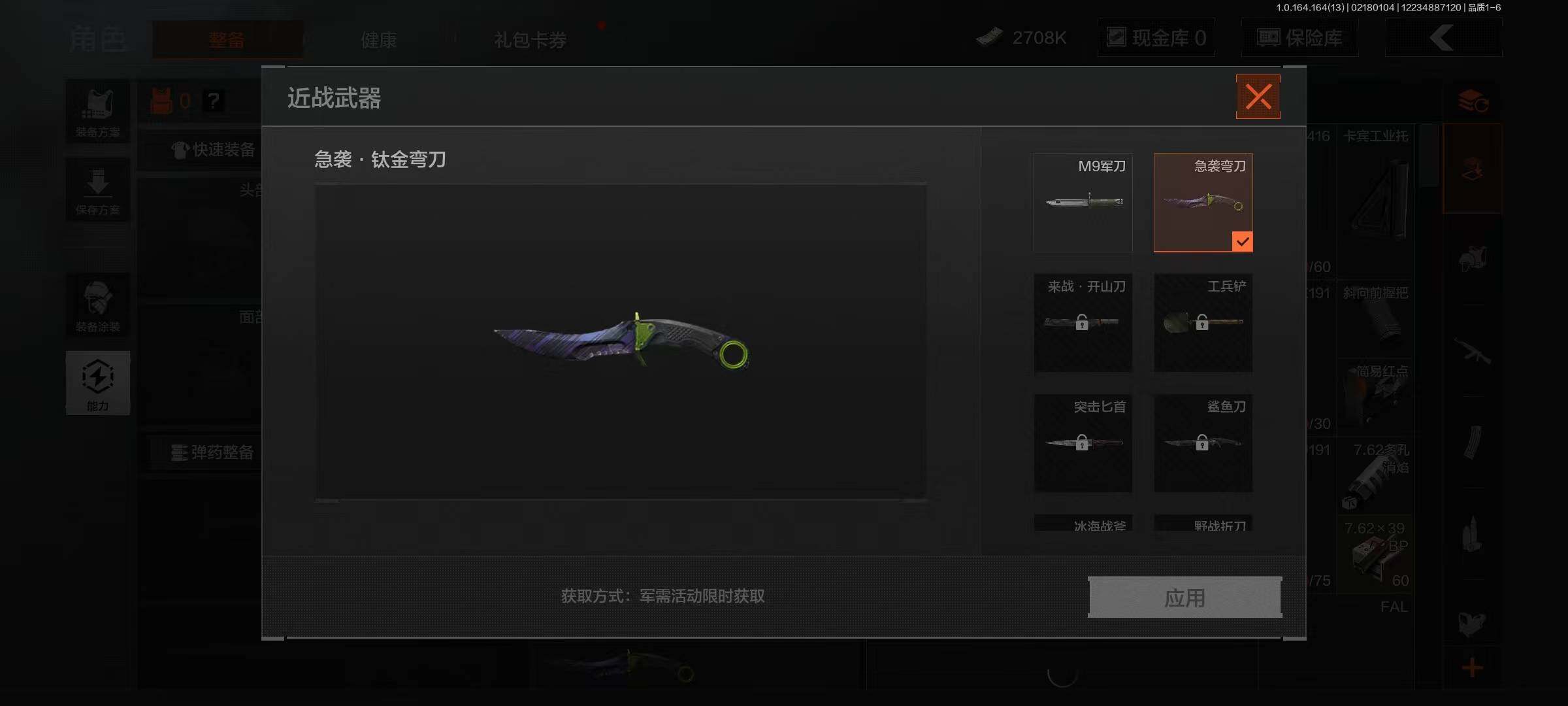 【C264842430】【AQQH549】段位:暗区传说/仓库价值(百万):4/急袭弯刀