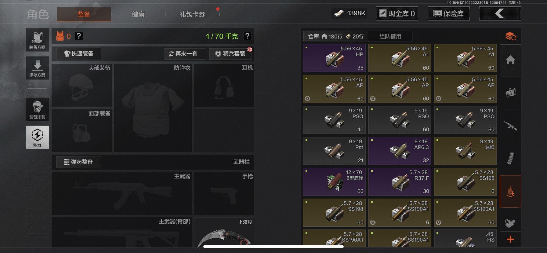 【C265253456】【AQQH624】等级:30/段位:王牌/柯恩币:1398000/下弦月/旗帜AEK/竞技风潮M4A1/棱光裂变QBU191