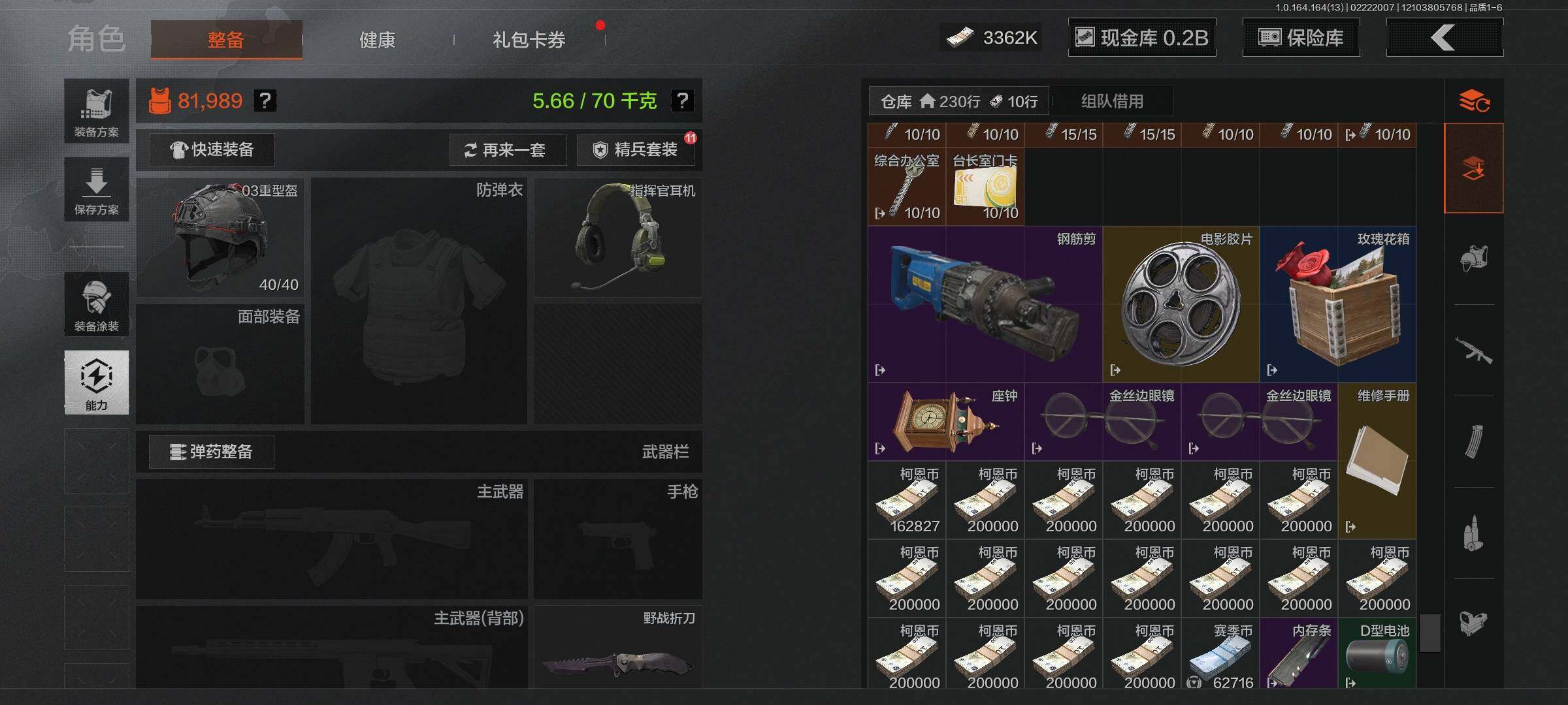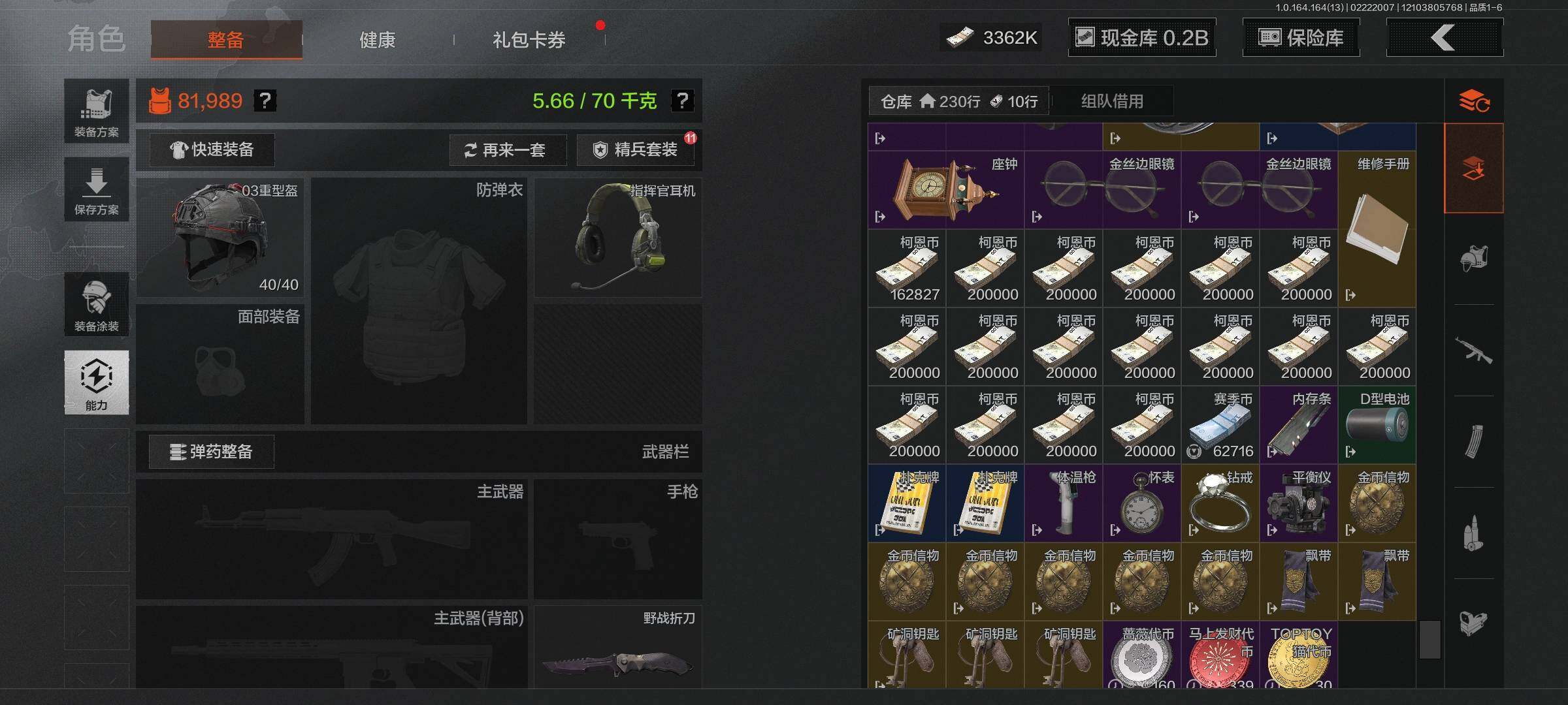 【C265269435】【AQZG1434】等级:30/段位:专家/仓库价值(百万):212/柯恩币:176000000/野战折刀/工兵铲/考古工具撬棍/伦琴幻影FAL/旗帜AEK/告丧夜曲AUG/告丧夜曲AR57/浮鳞影青QBZ192/地脉深处ACE31/伦琴幻影AX50