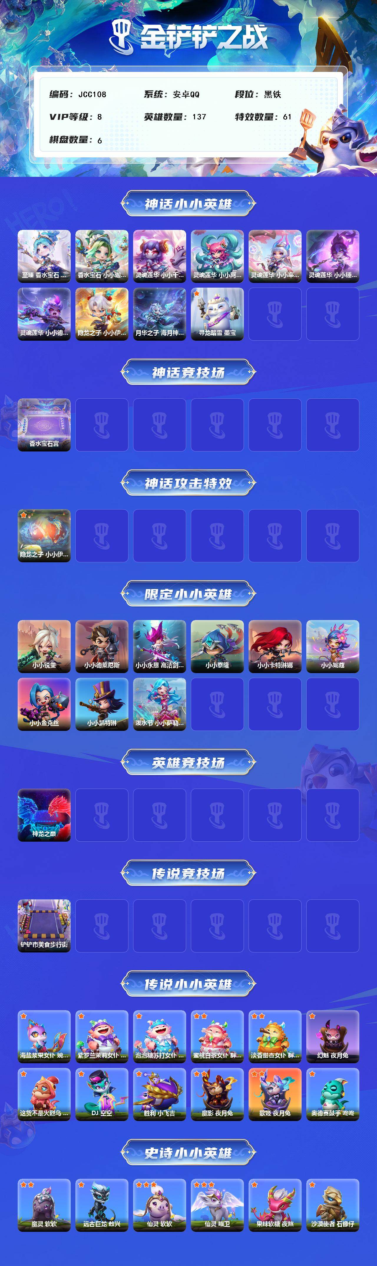 【C265323470】【JCC108】10神话/137小小英雄/6棋盘/至臻 香水宝石 小小迦娜/香水宝石 小小迦娜/灵魂莲华 小小千珏/灵魂莲华 小小阿狸/灵魂莲华 小小辛德拉/灵魂莲华 小小锤石/灵魂莲华 小小德莱厄斯/隐龙之子 小小伊泽瑞尔/月华之子 海月神 小小佛耶戈/寻龙踏雪 墨宝/香水宝石宫/隐龙之子 小小伊泽瑞尔(专属)/小小锐雯/小小德莱厄斯/小小永恩 高洁剑魂/小小泰隆/小小卡特琳娜/小小妮蔻/小小金克丝/小小凯特琳/泼水节 小小萨勒芬妮/神龙之巅/铲铲市美食步行街/海盐浆果女仆 婉婉/紫罗兰茉莉女仆 胖胖龙/泡泡糖苏打女仆 胖胖龙/蜜桃白茶女仆 胖胖龙/淡香甜杏女仆 胖胖龙/幻魅 夜月兔/这货不是火烈鸟 咚咚/DJ 空空/胜利 小飞吉/魔影 夜月兔/歌姬 夜月兔/奥德赛鼓手 咚咚/魔灵 软软/远古巨龙 敖兴/仙灵 软软/仙灵 喵卫/果味软糖 夜煞/沙漠使者 石像仔