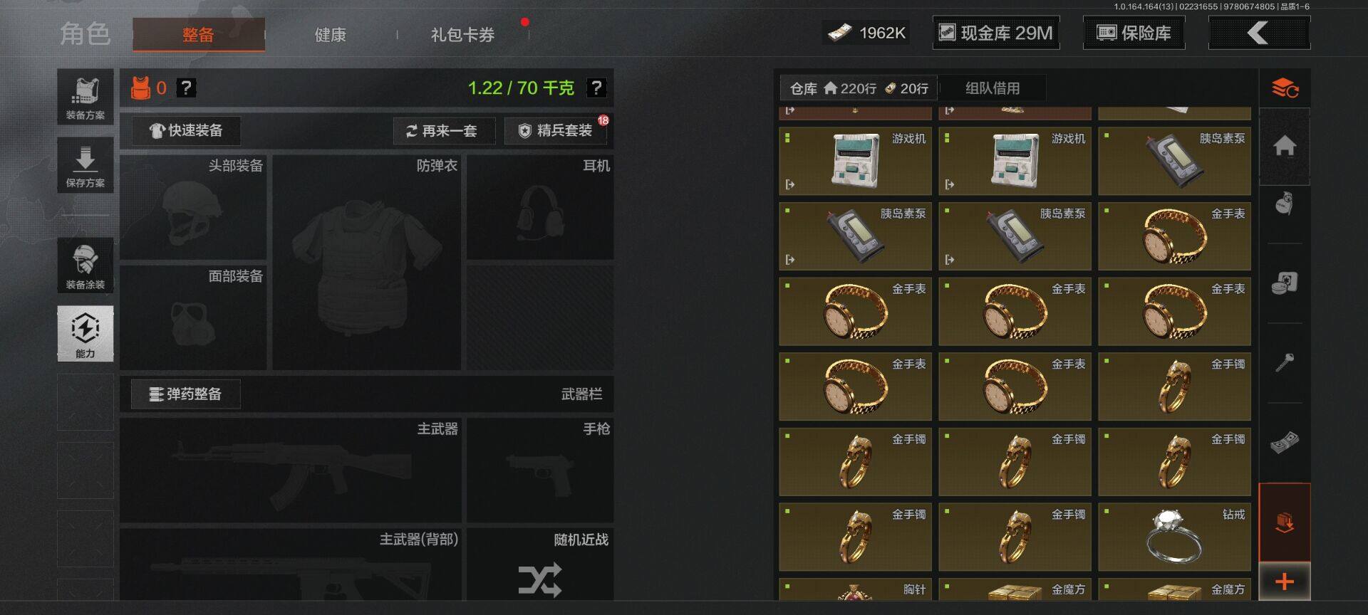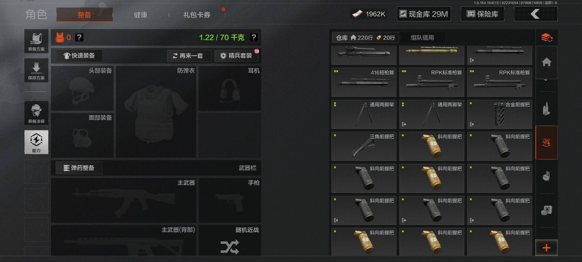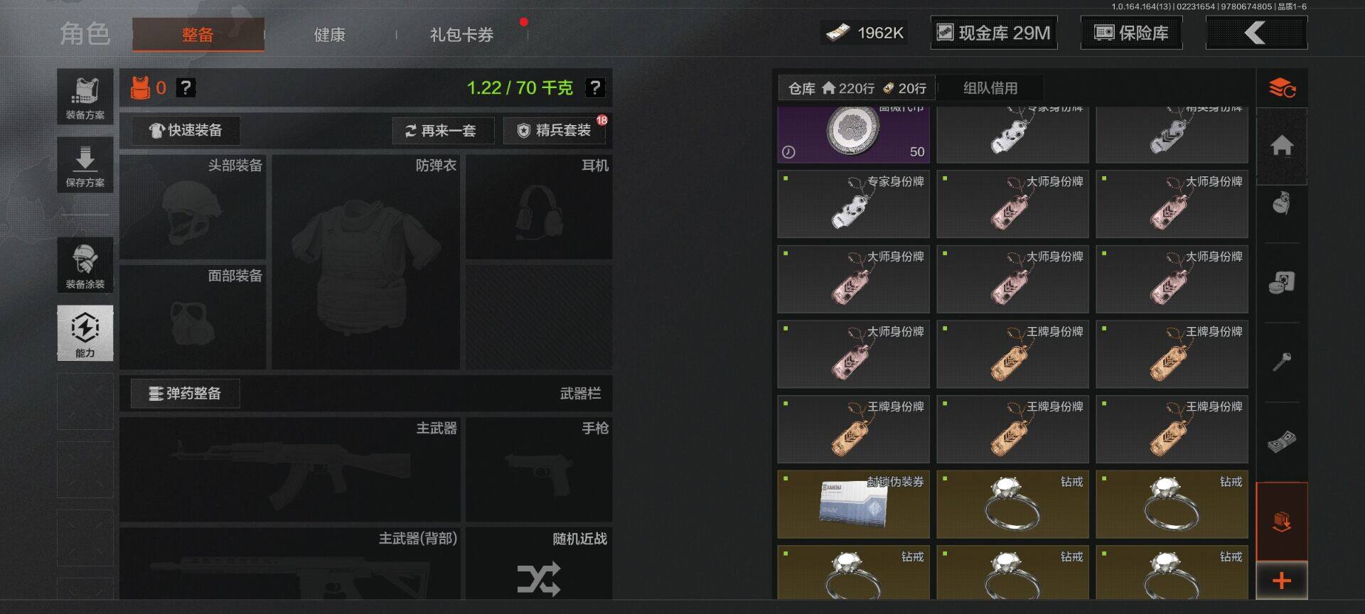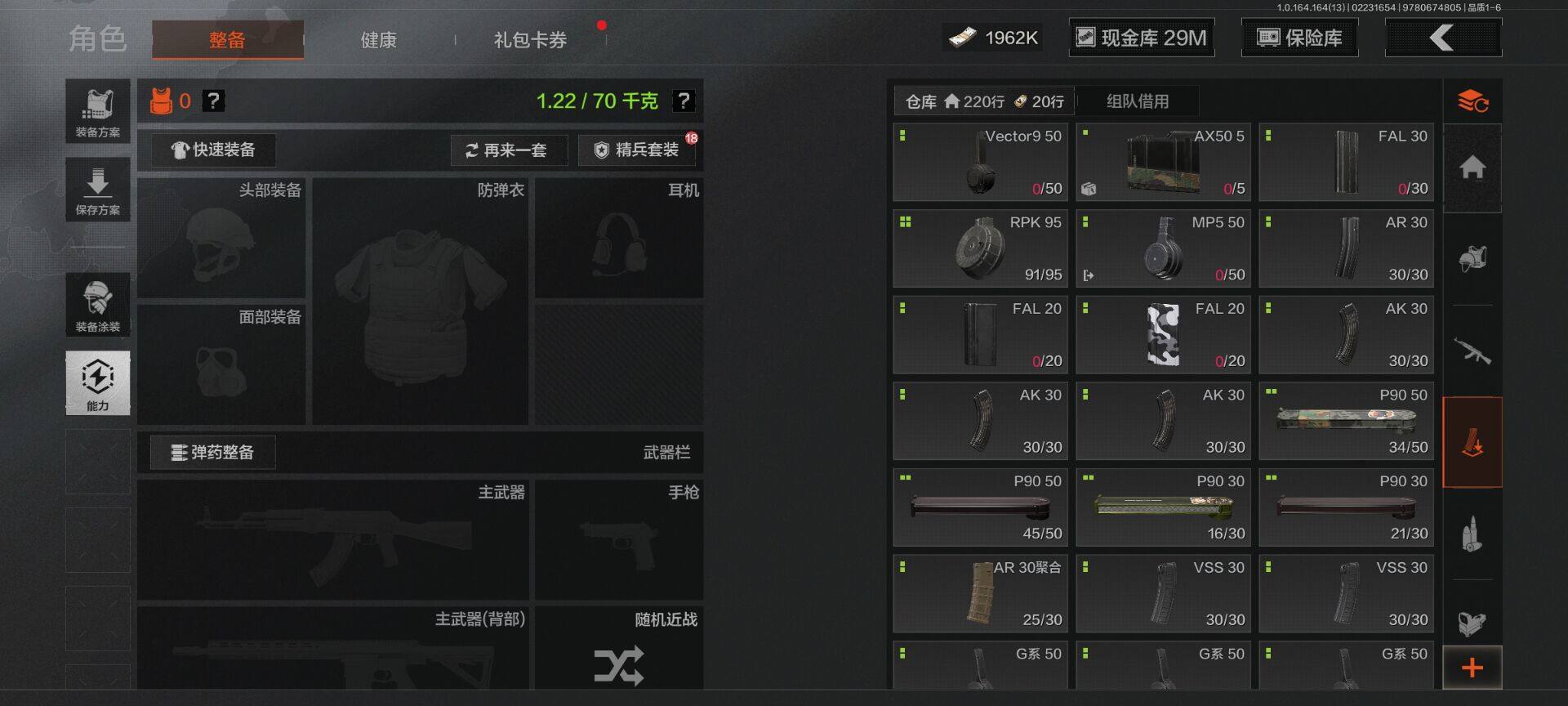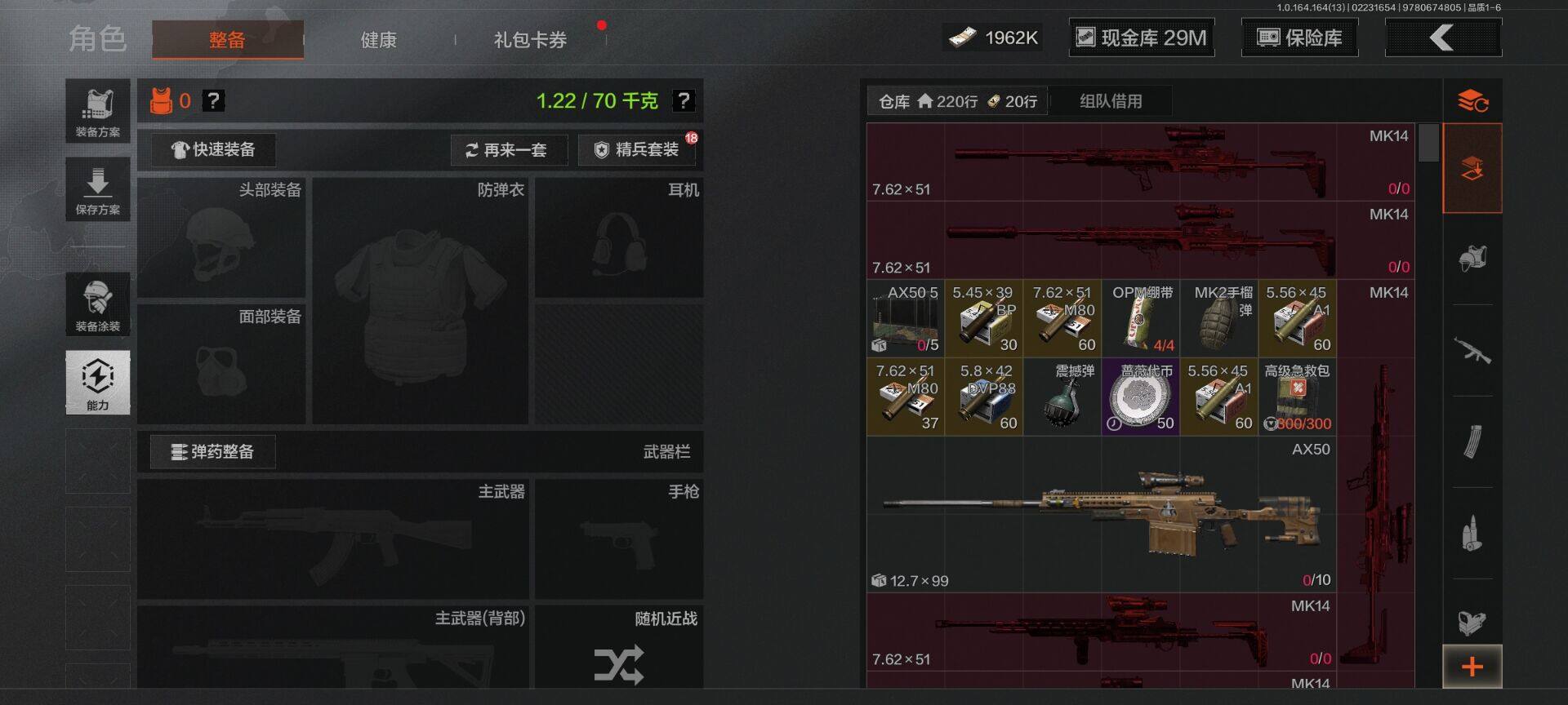 【C265394709】【AQZG1445】等级:30/段位:精英/仓库价值(百万):80.8/柯恩币:1962000/工兵铲/胜利军刀/来战·开山刀/下弦月/告丧夜曲AUG