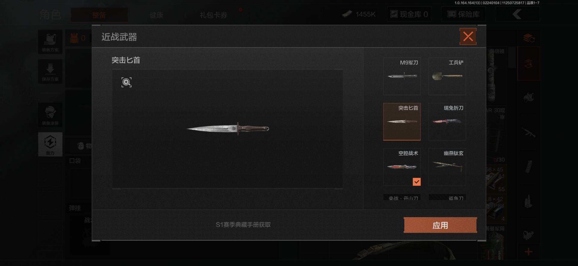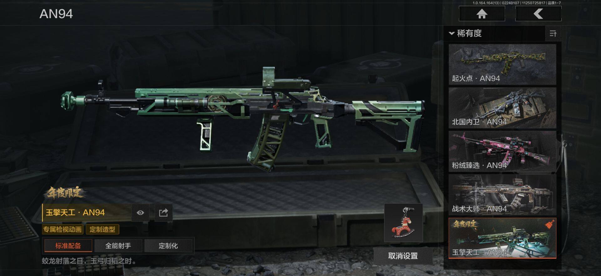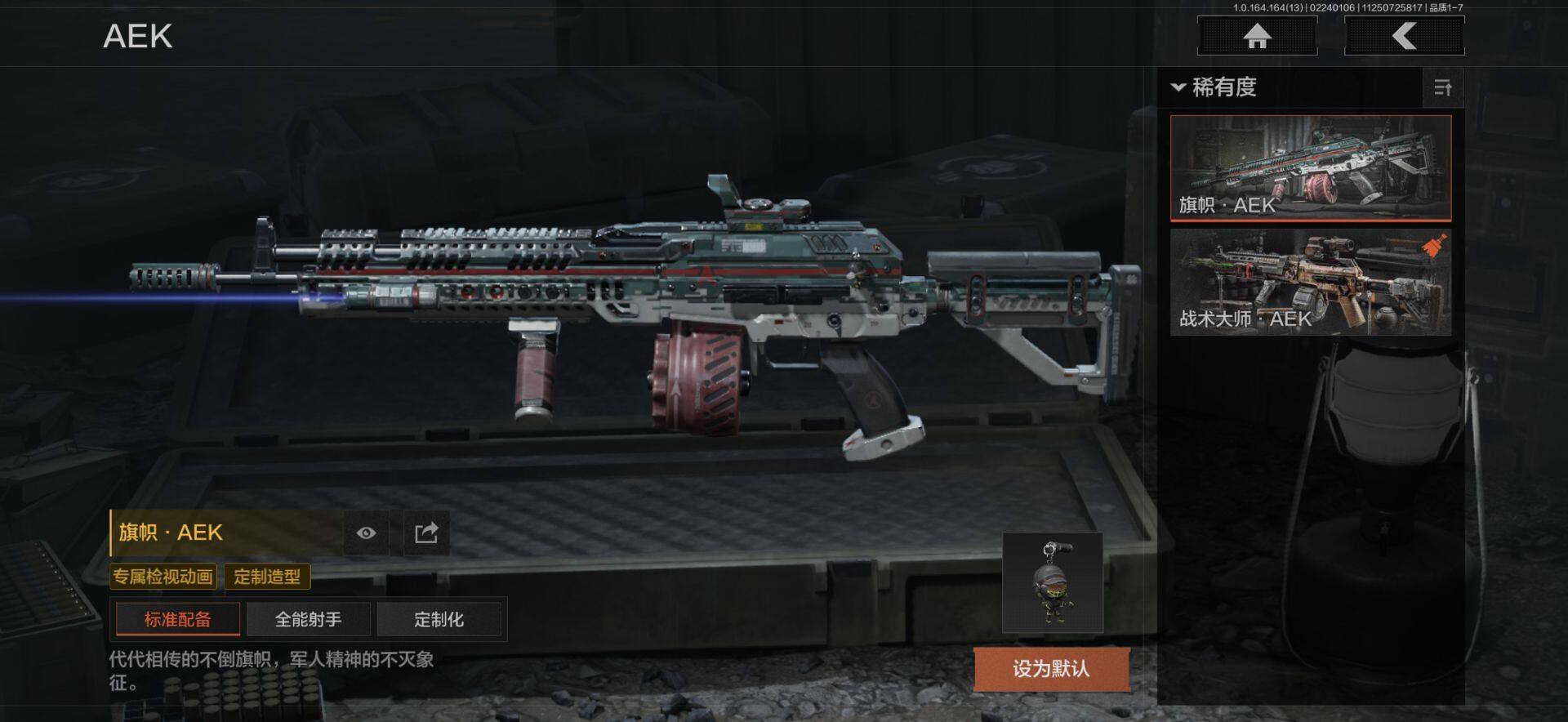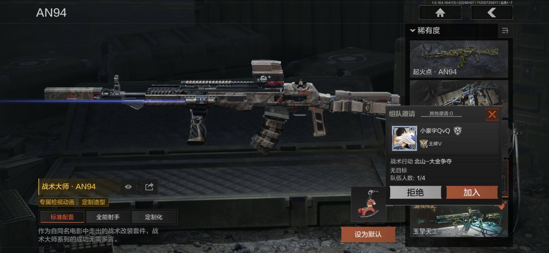 【C265469626】【AQZ227】等级:30/段位:王牌/仓库价值(百万):2.7/柯恩币:1455000/突击匕首/空腔战术/瑞兔折刀/工兵铲/幽燕钛玄/白蔷薇斯黛拉/套金客莫雷尔/棱光裂变QBU191/旗帜AEK/战术大师AN94/战术大师AEK/旧王圣谕QBZ191/玉擎天工AN94/利齿风暴MPX/玉擎天工MP5/地脉深处FAL/包络战术AKM/镀火熔金H416/近卫荣誉RPK16/骑士之剑AX50