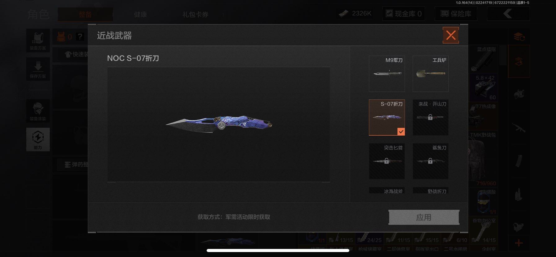 【C265427571】【AQQH646】段位:大师/仓库价值(百万):8/S-07折刀