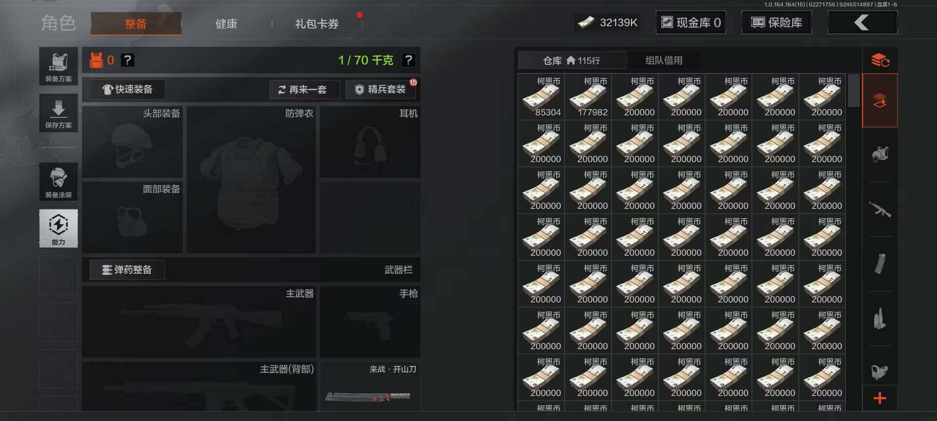 【C265700013】【AQZG1500】等级:30/段位:大师/仓库价值(百万):32.1/柯恩币:32139000/工兵铲/来战·开山刀/蓝色咆哮H416