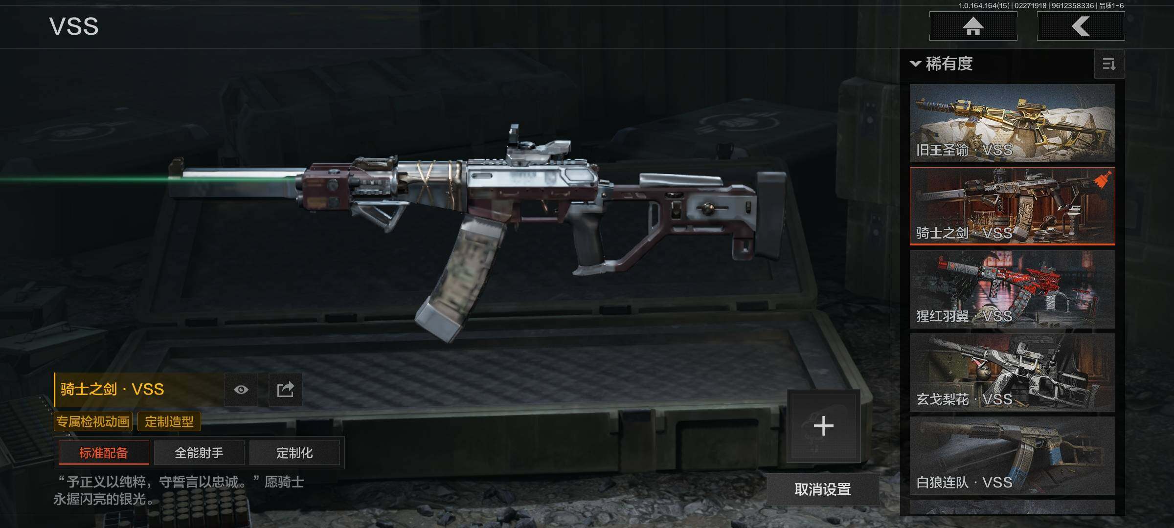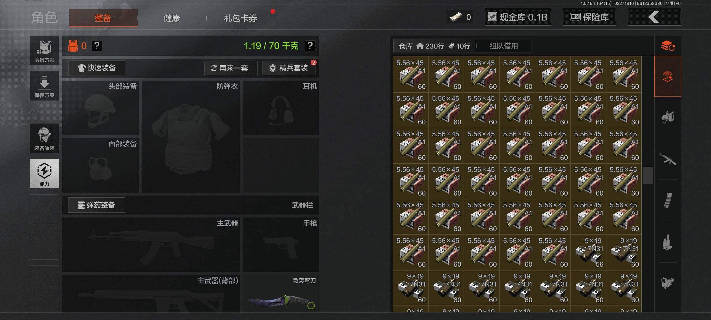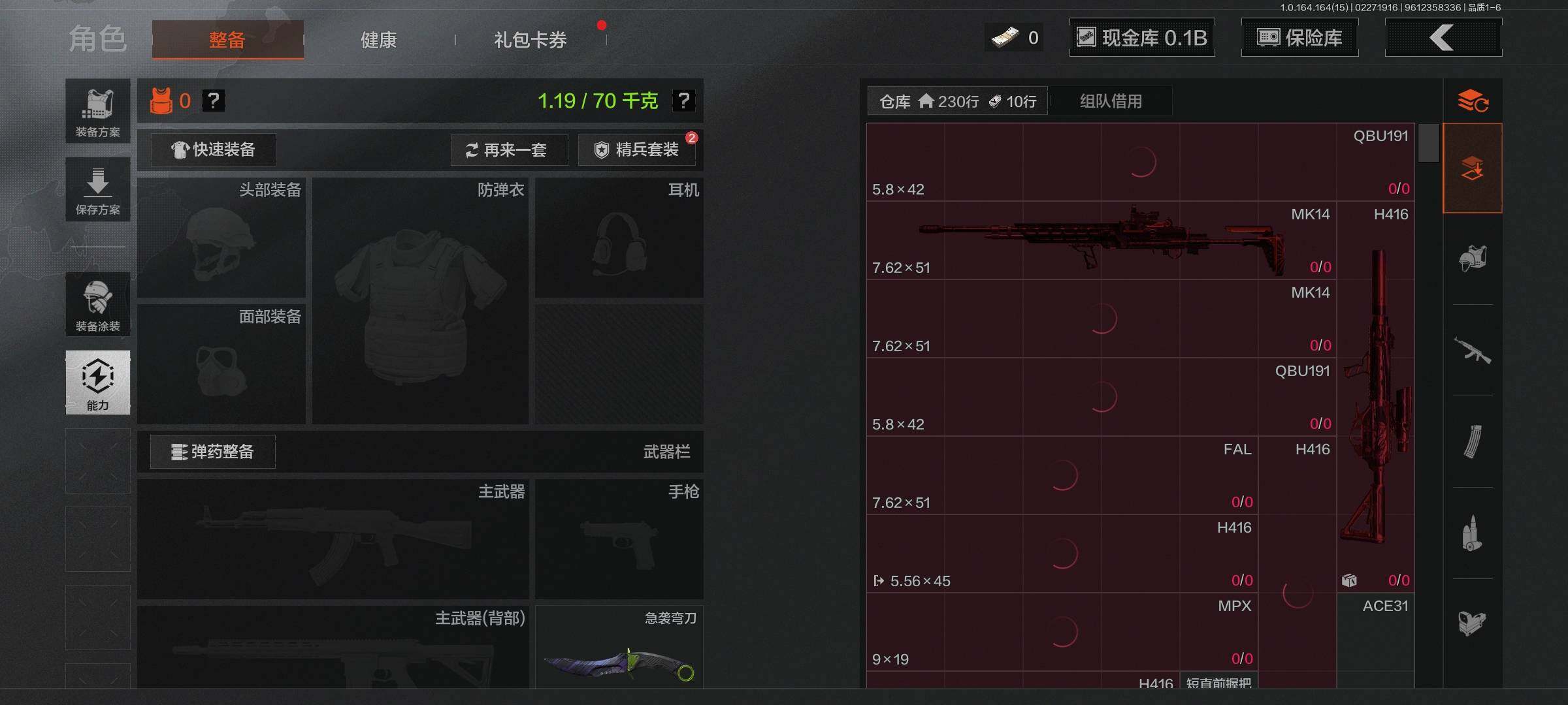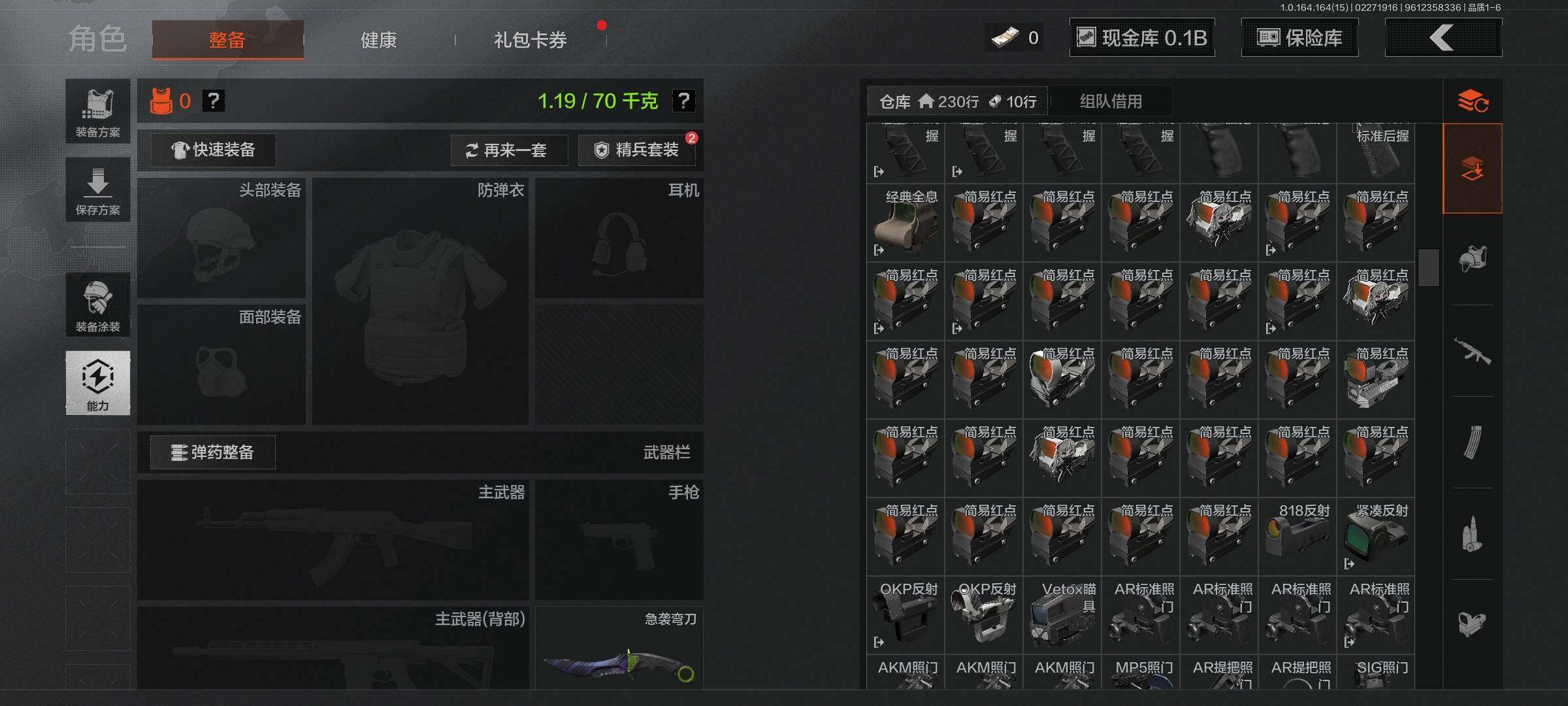 【C265736508】【AQZG1496】等级:30/段位:王牌/仓库价值(百万):159.2/柯恩币:105295899/急袭弯刀/棱光裂变QBU191/骑士之剑VSS/浮鳞影青QBZ192/旧王圣谕QBZ191/竞技FAL/镀火熔金H416/蓝色咆哮H416