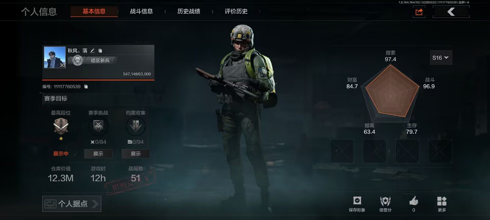 【C265830942】【AQQH694】等级:30/段位:专家/仓库价值(百万):12.3/柯恩币:3460/工兵铲