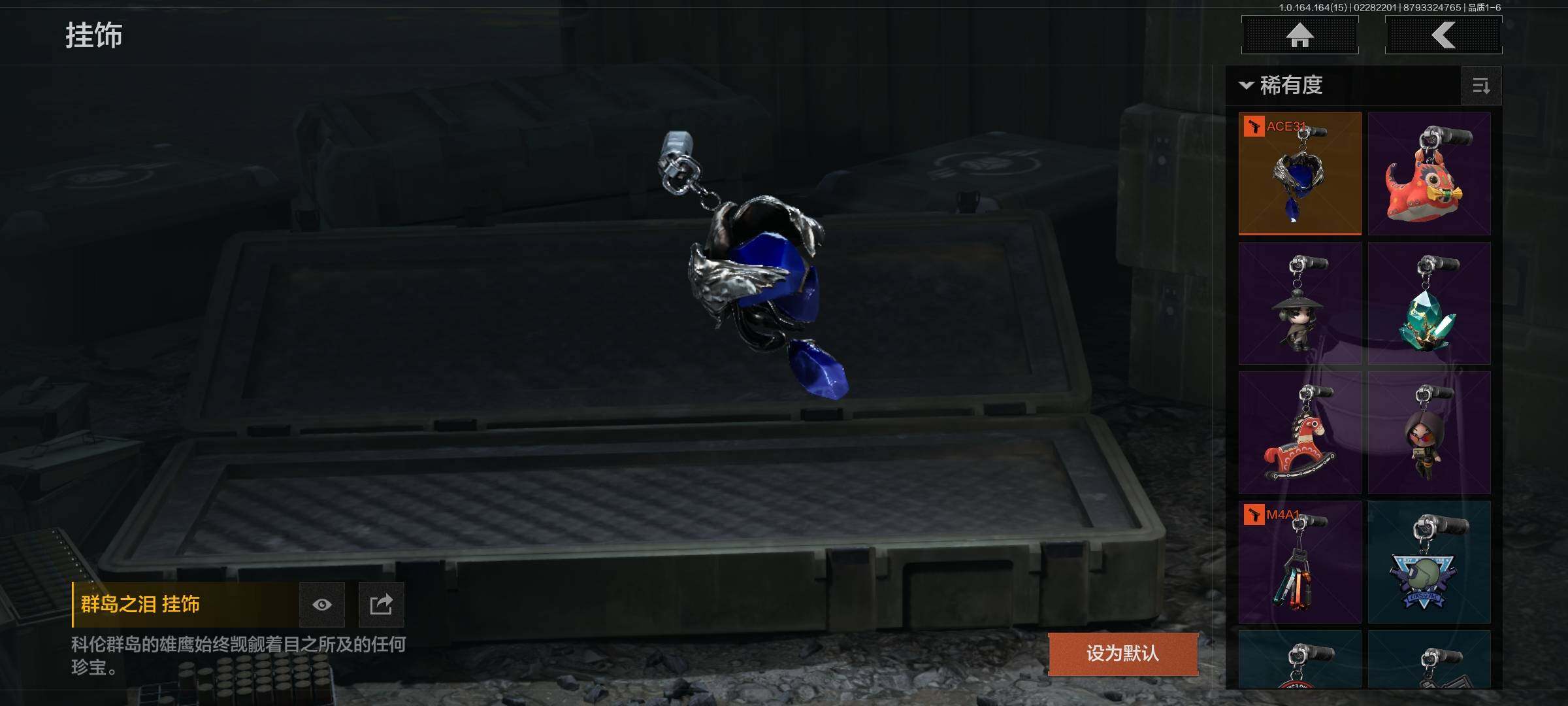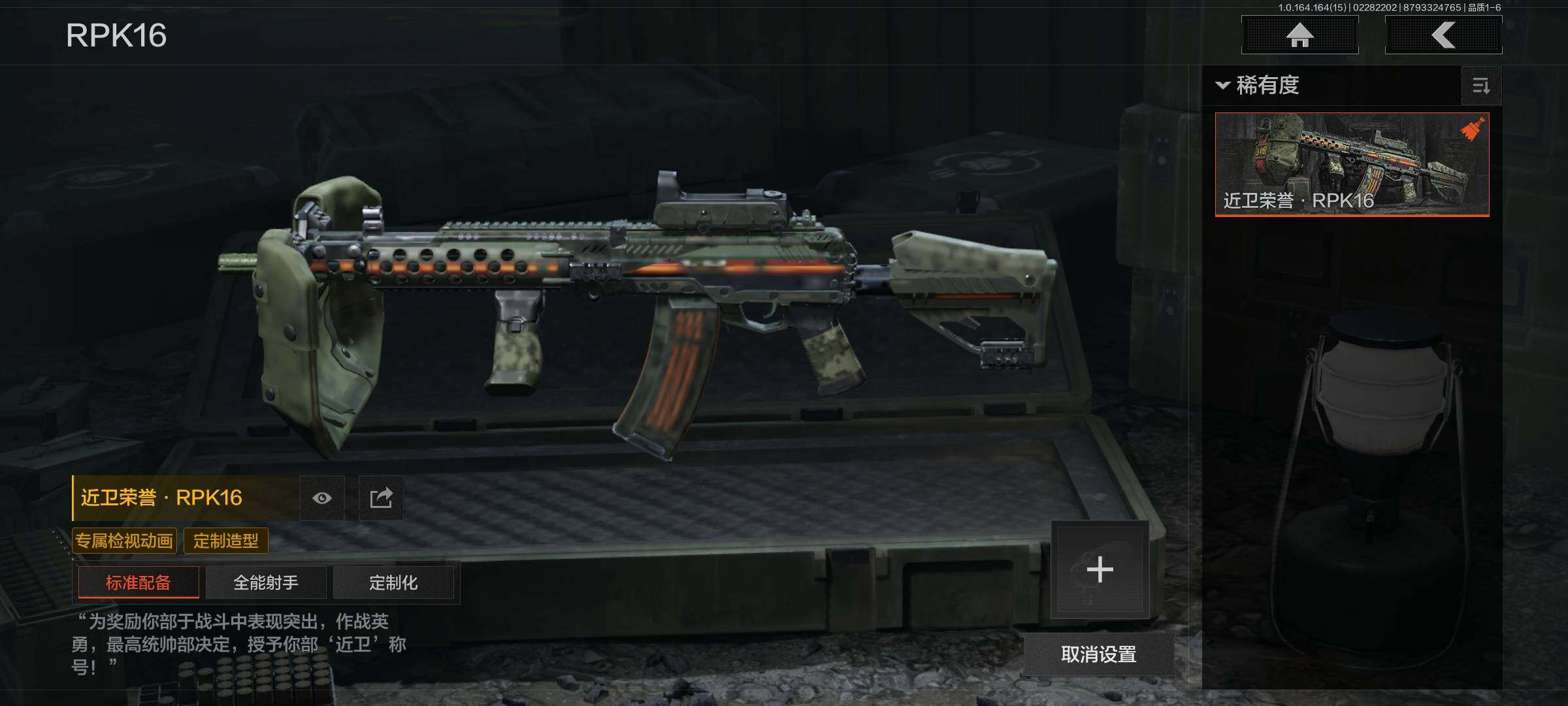 【C265813375】【AQZG1504】等级:30/段位:暗区传说/仓库价值(百万):16.3/柯恩币:2475000/下弦月/白蔷薇斯黛拉/近卫荣誉RPK16/玉擎天工AN94