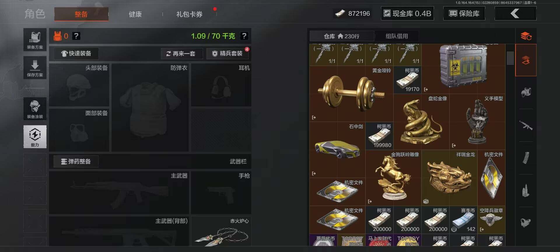 【C265987192】【AQZG1503】等级:30/段位:王牌/仓库价值(百万):387.3/柯恩币:872196/考古工具撬棍/工兵铲/来战·开山刀/赤火炉心/伦琴幻影FAL/镀火熔金H416/告丧夜曲AR57/地脉深处ACE31/百锻铁骑AEK/战术大师AN94/旧王圣谕QBZ191/旧王圣谕VSS