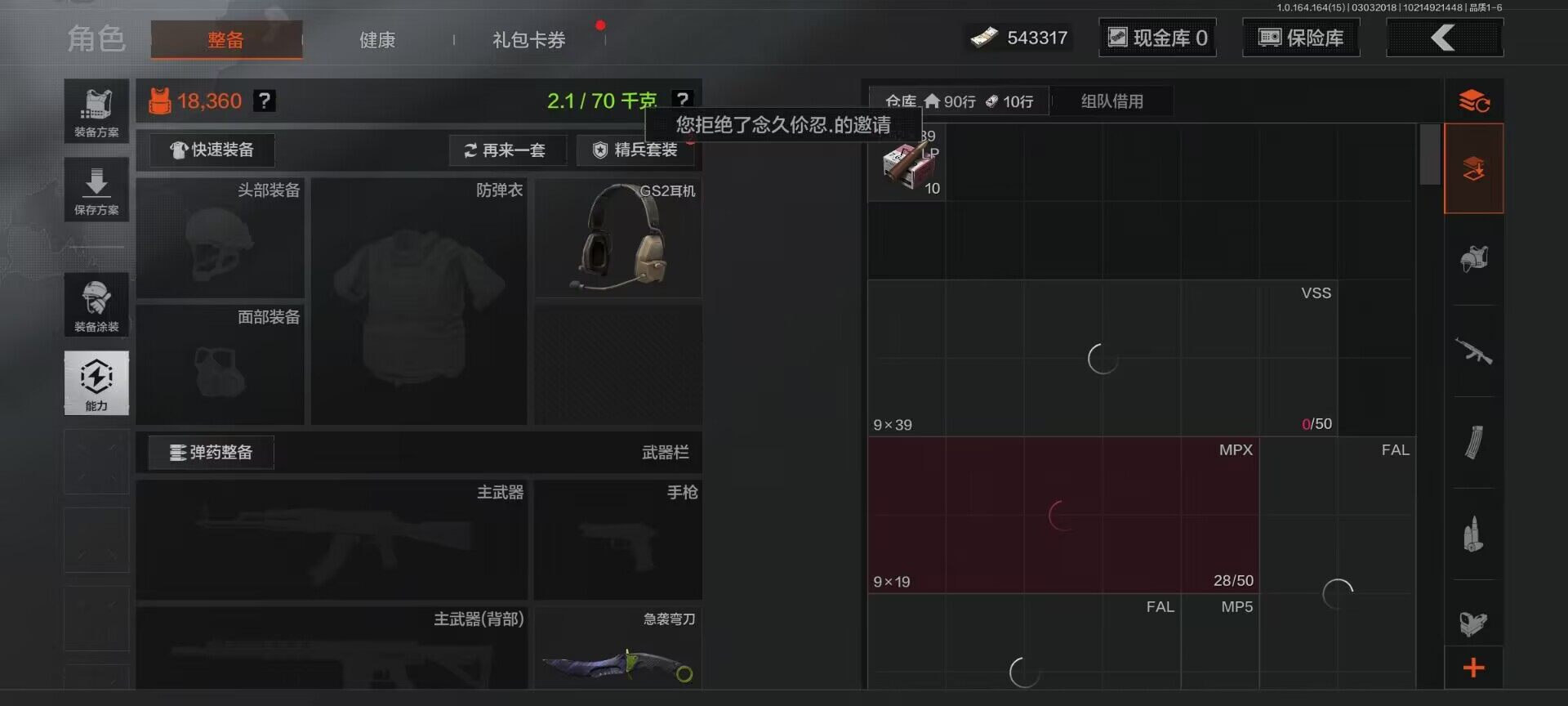 【C266194855】【AQZG1549】等级:30/段位:暗区传说/仓库价值(百万):2.9/柯恩币:543317/急袭弯刀/下弦月/突击匕首/深潜行者II/林中人·特遣作战服/噤声者吉利服/冥河/弗雷德