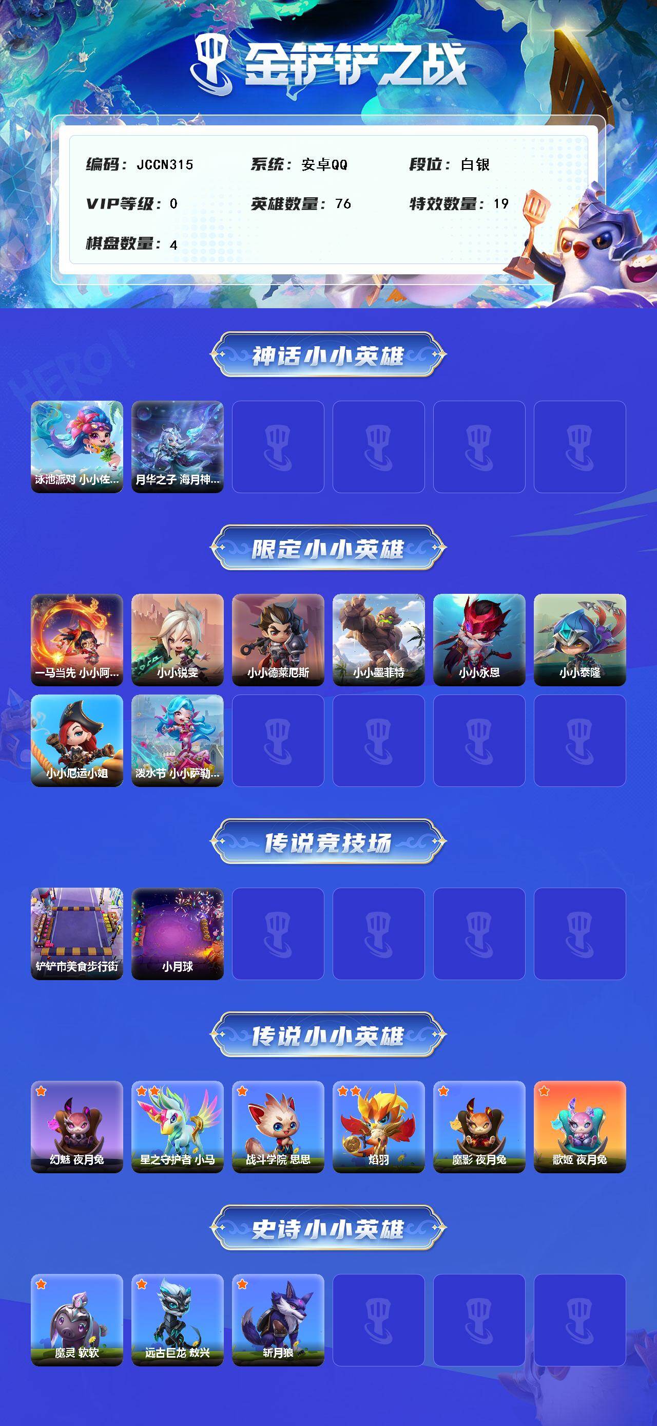 【C266621866】【JCCN315】2神话/76小小英雄/4棋盘/泳池派对 小小佐伊/月华之子 海月神 小小佛耶戈/一马当先 小小阿萝拉/小小锐雯/小小德莱厄斯/小小墨菲特/小小永恩/小小泰隆/小小厄运小姐/泼水节 小小萨勒芬妮/铲铲市美食步行街/小月球/幻魅 夜月兔/万圣夜 南瓜头 威老板/星之守护者 小马/战斗学院 思思/焰羽/魔影 夜月兔/歌姬 夜月兔/魔灵 软软/远古巨龙 敖兴/斩月狼