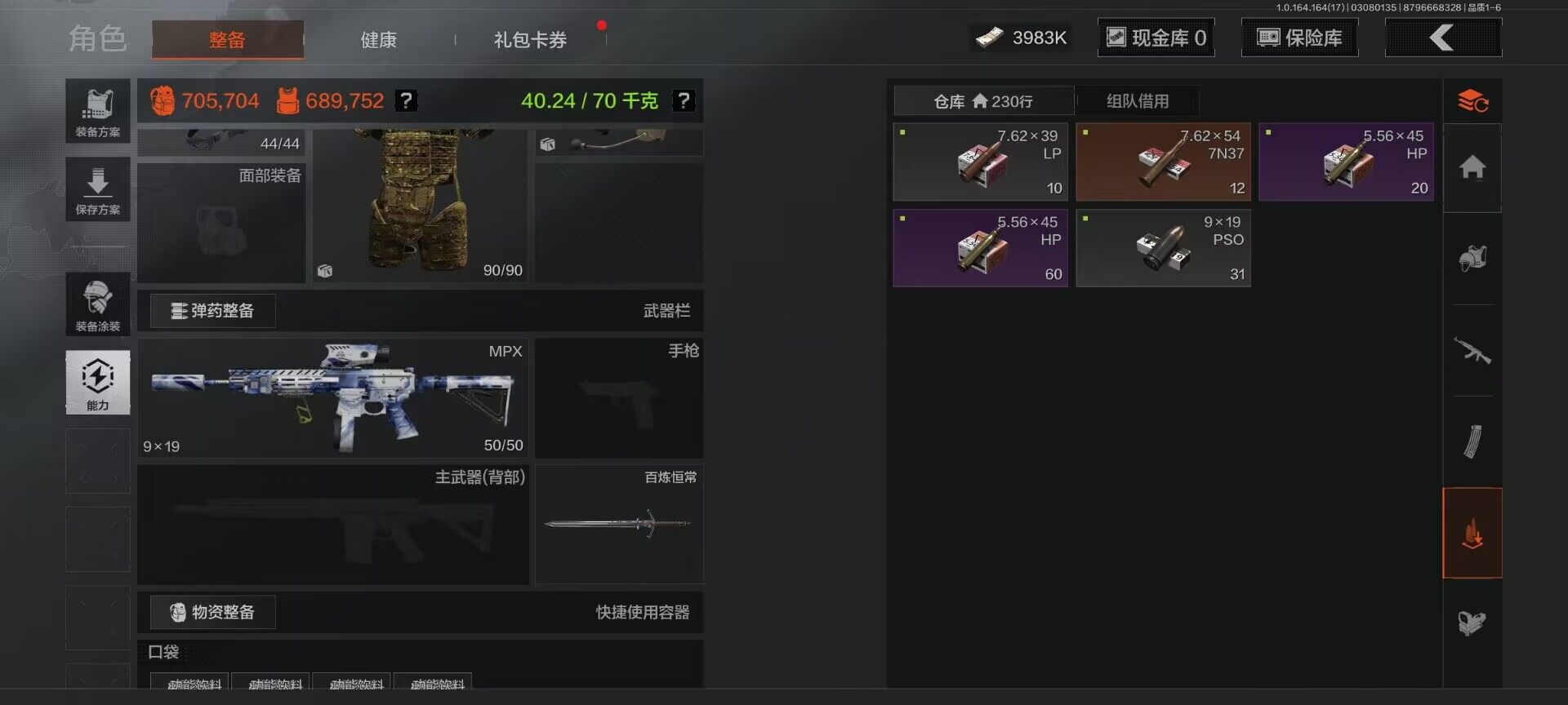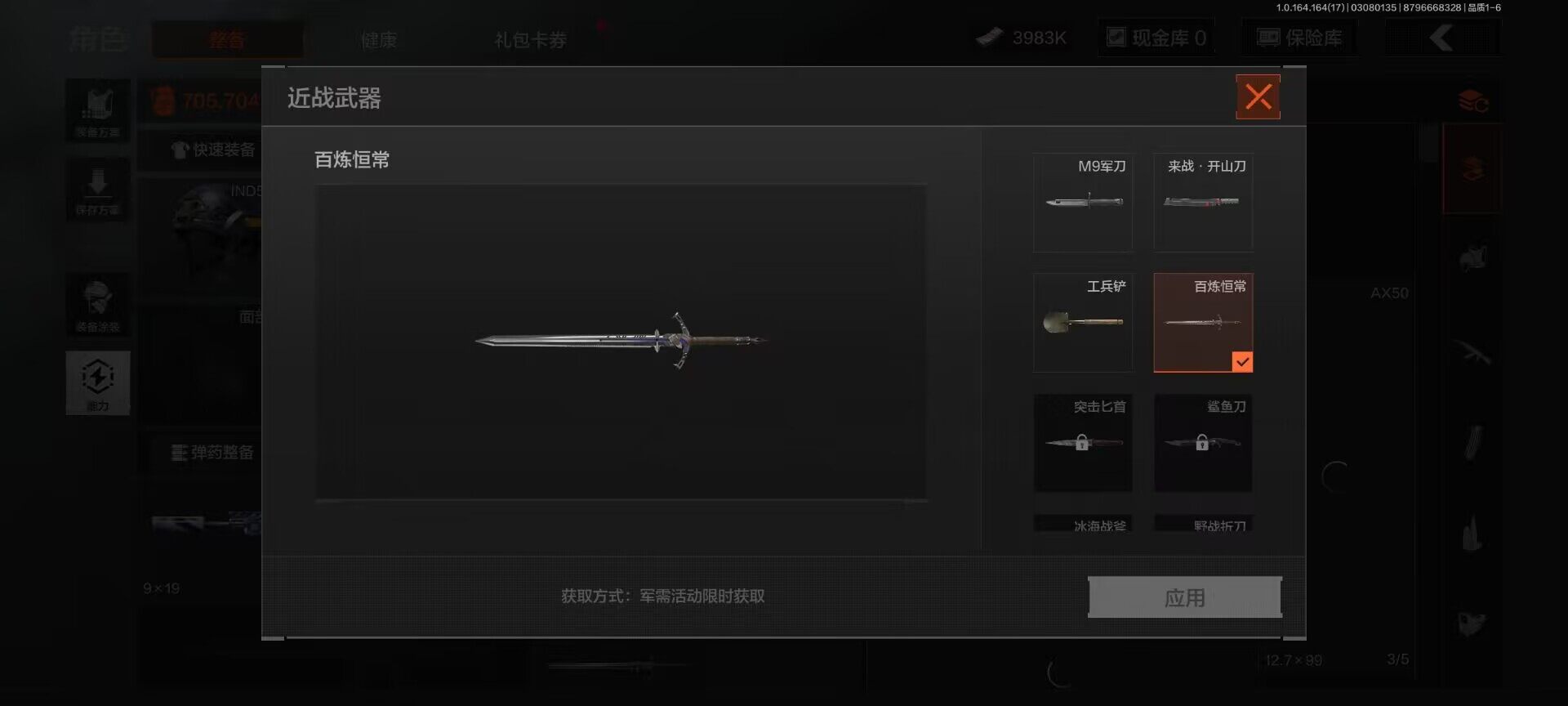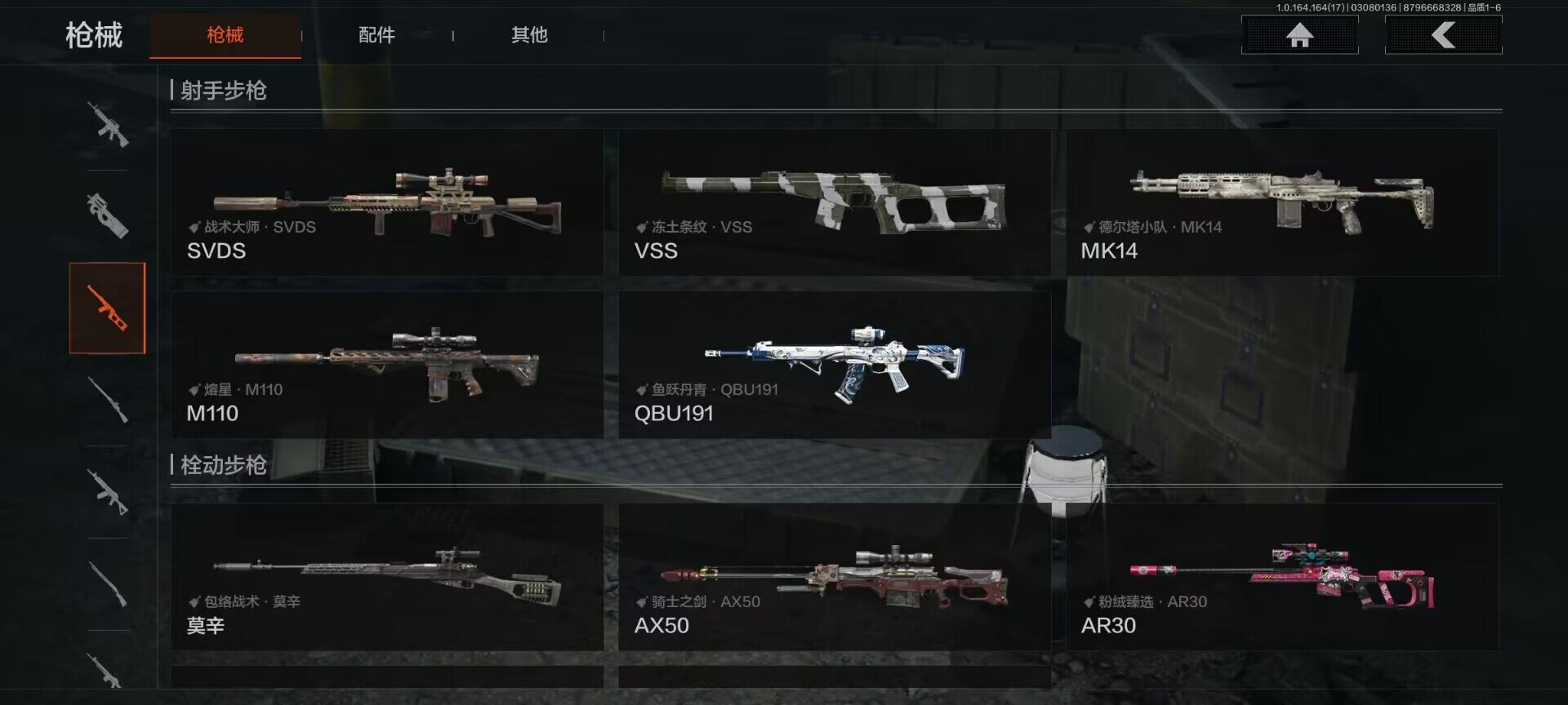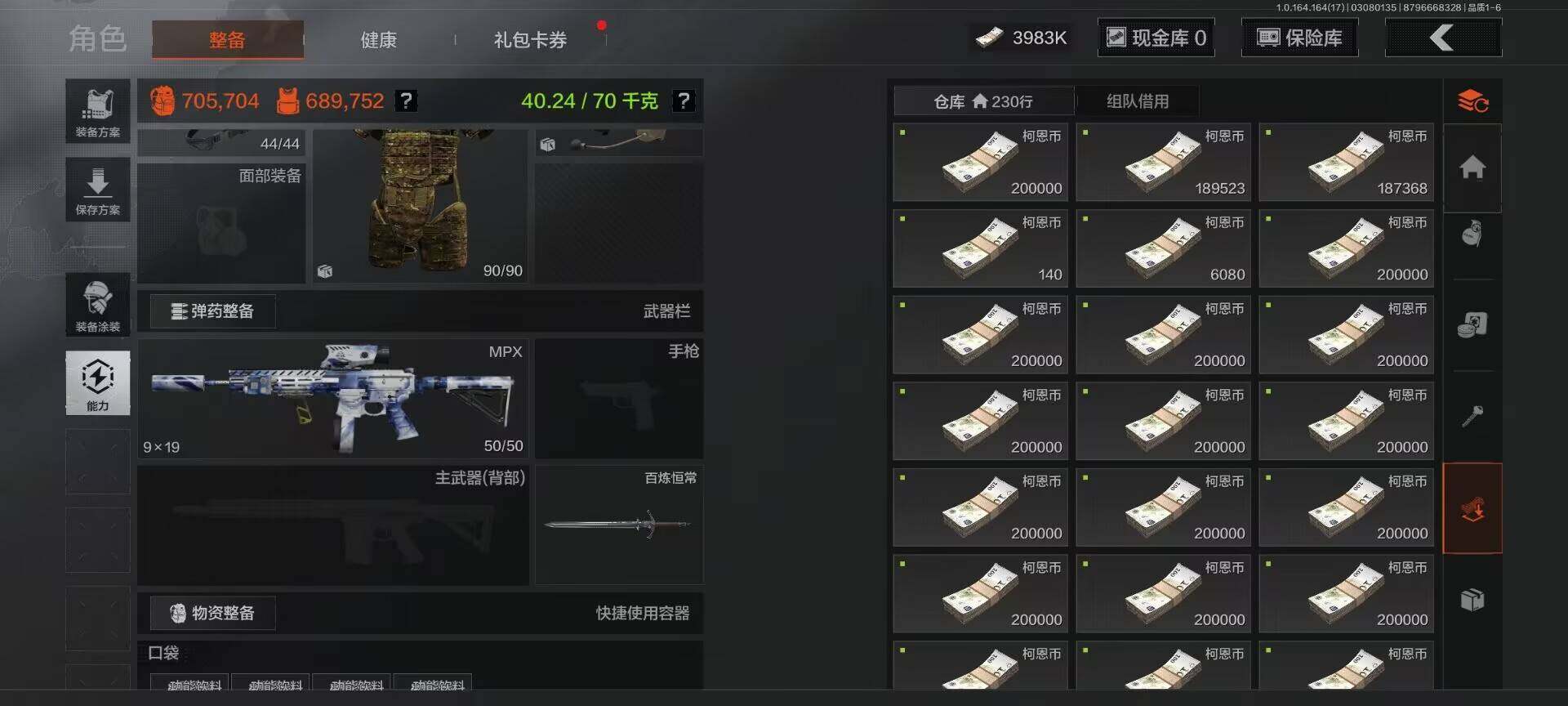 【C266680068】【AQZG1599】等级:30/段位:王牌/仓库价值(百万):6.2/柯恩币:3983000/百炼恒常/冥河/深潜行者II/白蔷薇斯黛拉/脉冲马克西姆