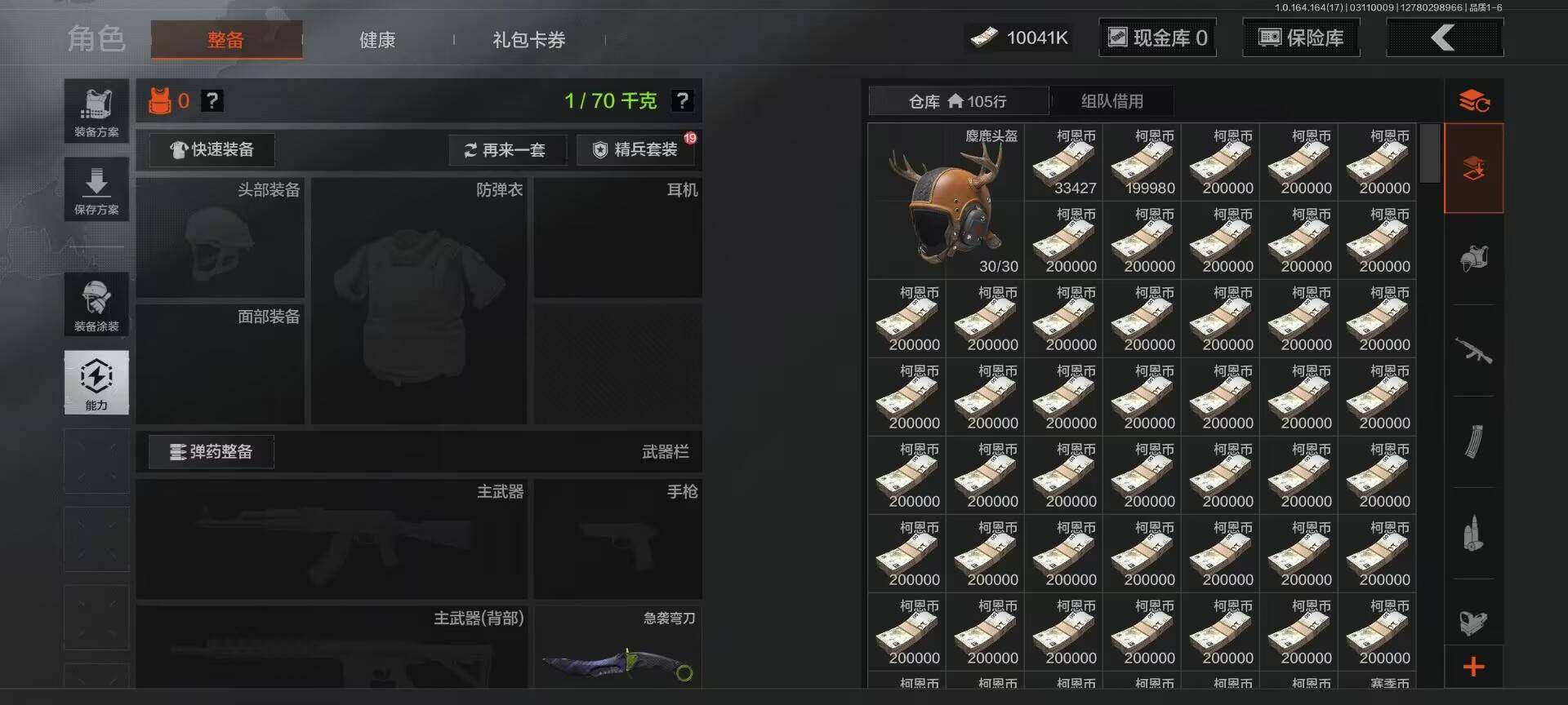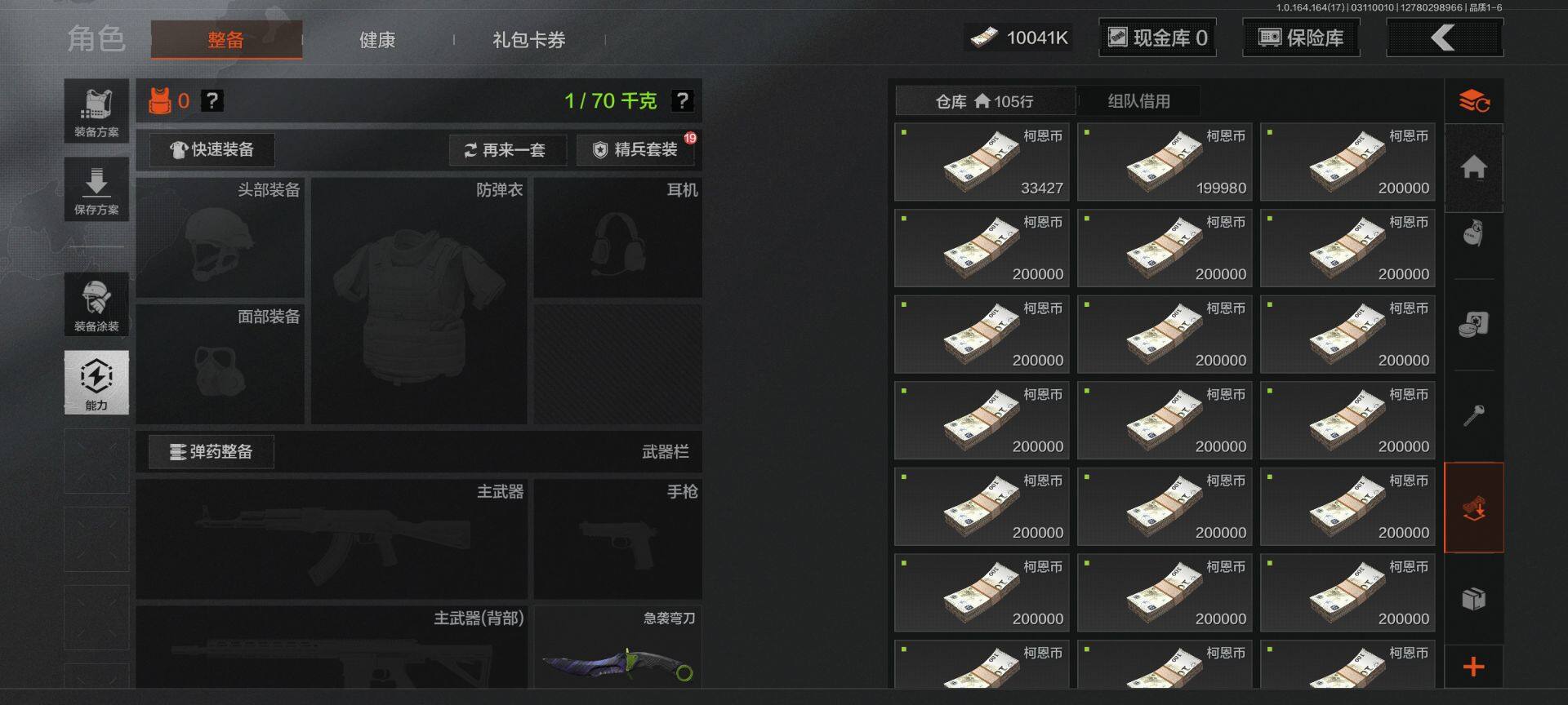 【C266951709】【AQZG1633】等级:30/段位:专家/仓库价值(百万):10.1/柯恩币:10041000/急袭弯刀