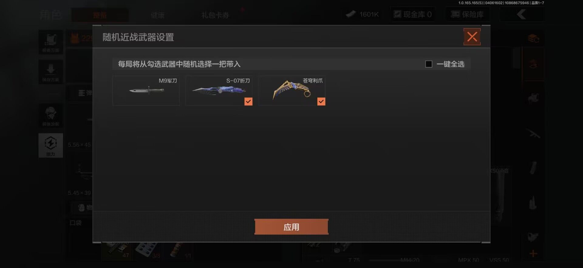 【C269536360】【AQZ402】等级:30/段位:精英/仓库价值(百万):8.6/NOCs-7折刀/苍穹利爪/白蔷薇斯黛拉/脉冲马克西姆/骑士之剑VSS/战术大师AN94/旧王圣谕QBZ191/利齿风暴MPX/旧王圣谕VSS/战术大师AEK