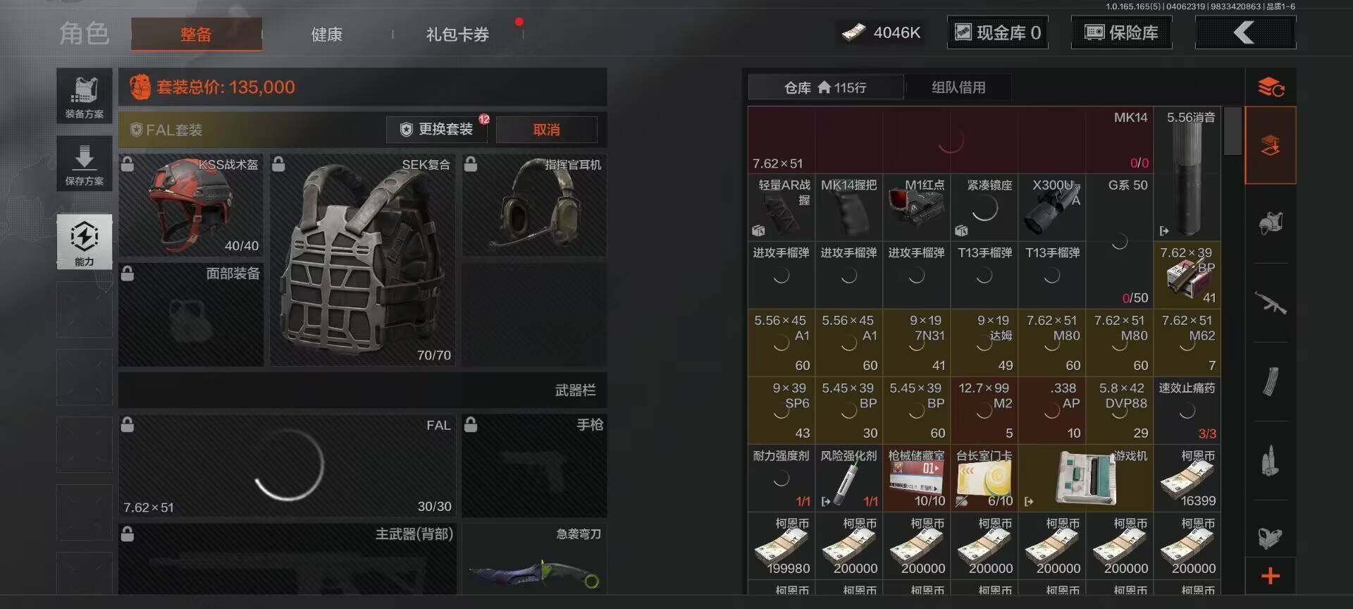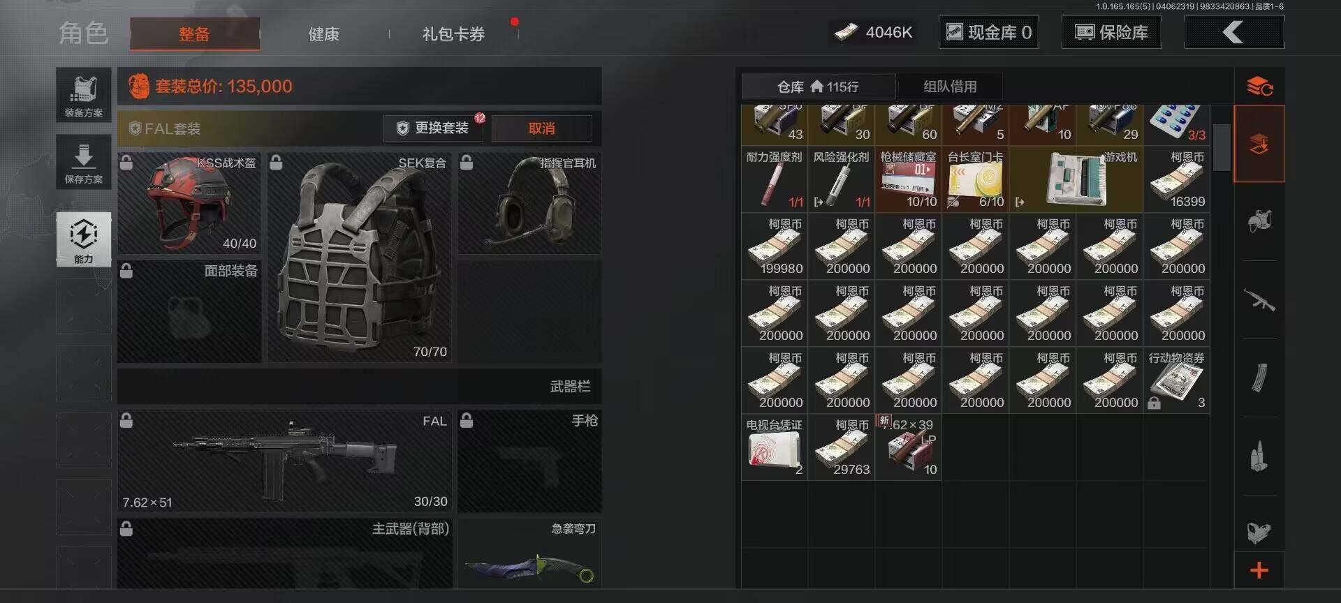 【C269516345】【AQZG2094】等级:30/段位:专家/仓库价值(百万):4.9/柯恩币:4046/工兵铲/急袭弯刀/来战·开山刀/白蔷薇斯黛拉/镀火熔金H416