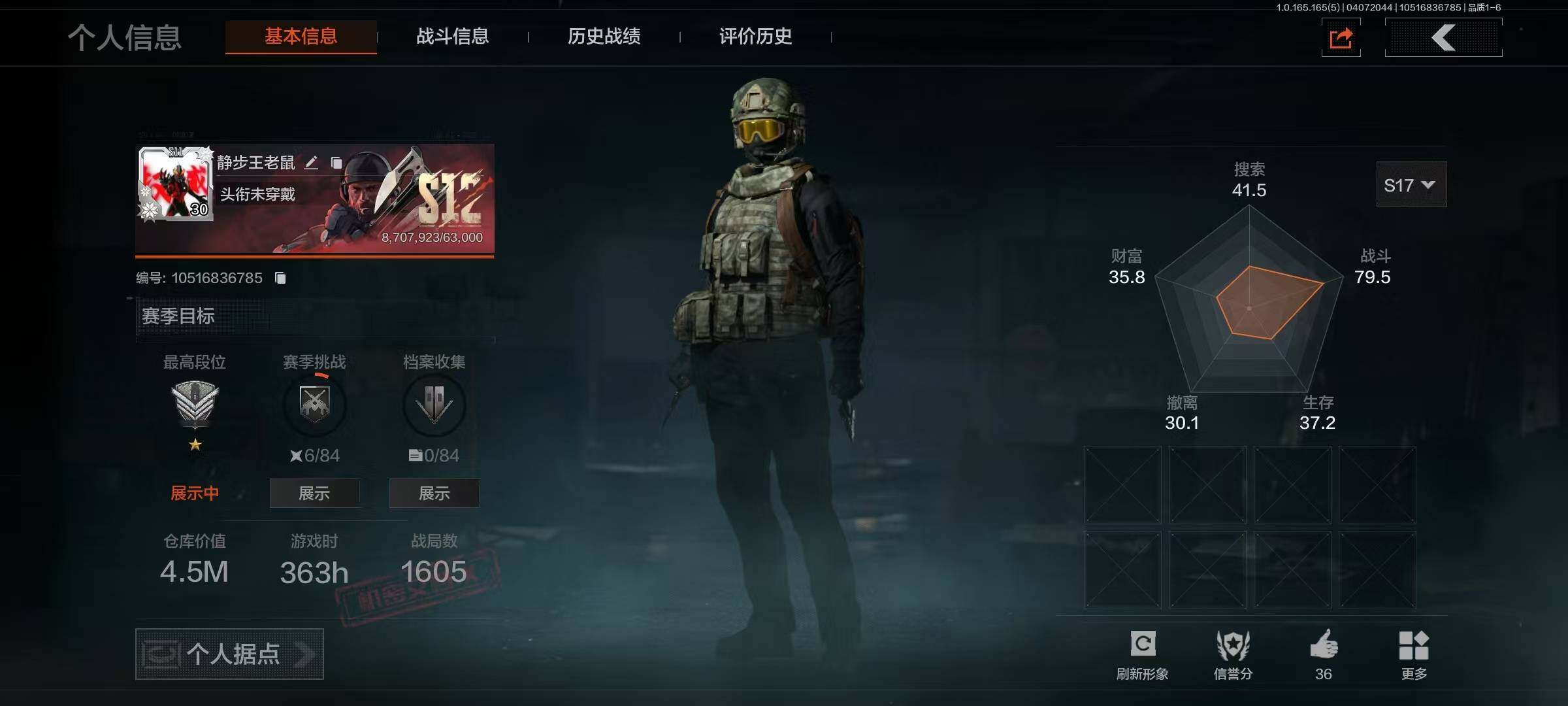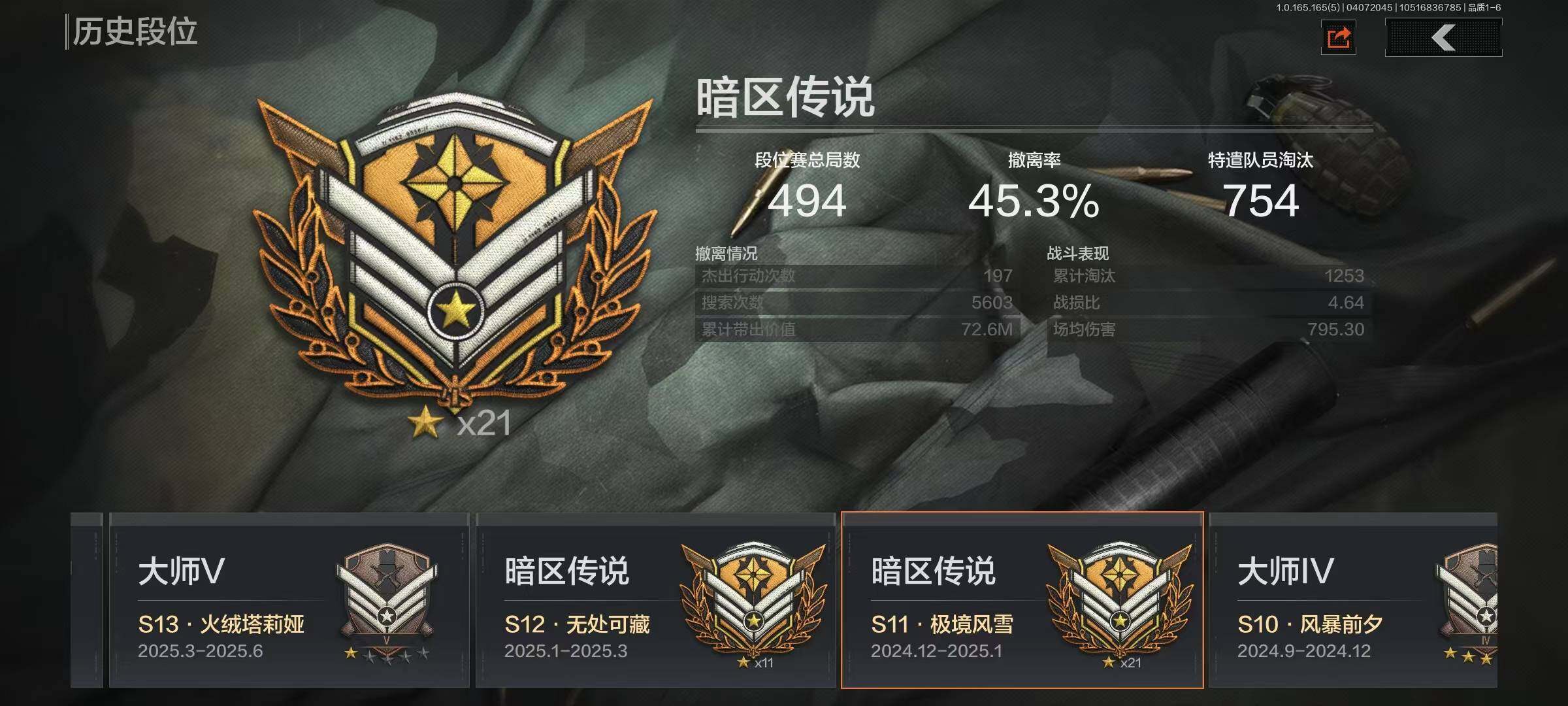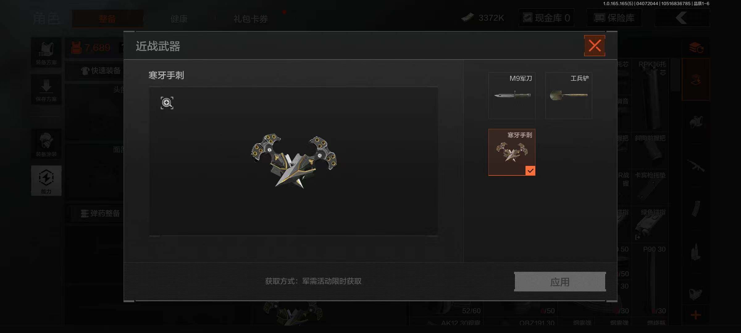 【C269782023】【AQN261】等级:30/段位:暗区传说/仓库价值(百万):4.5/柯恩币:3372/寒牙手刺