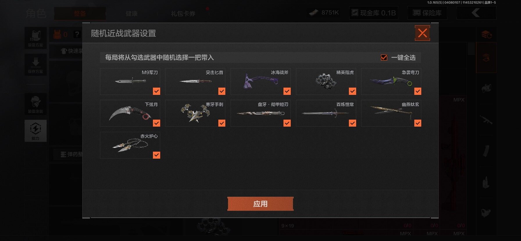 下弦月,精英指虎,突击匕首,冰海战斧,急袭弯刀