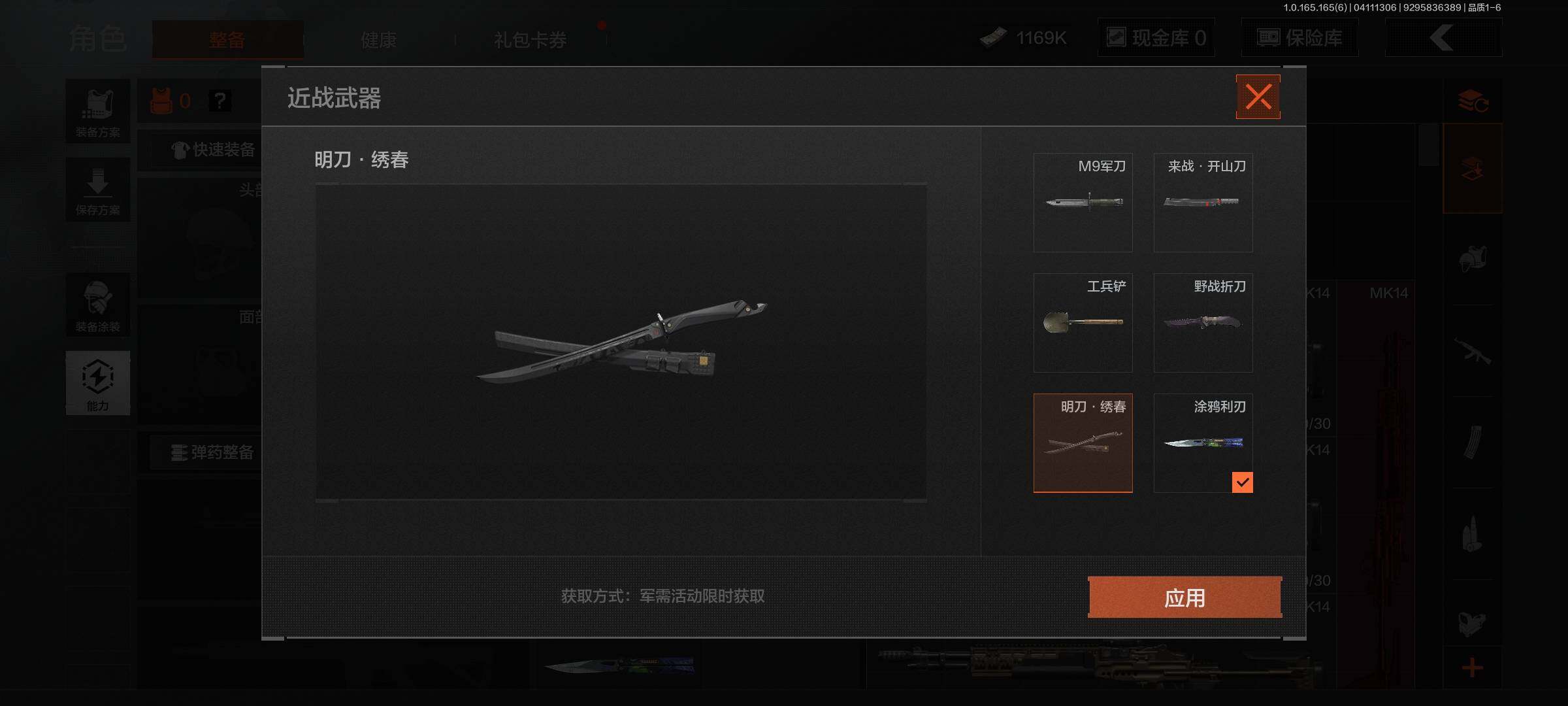 【C2610026407】【AQZG2142】等级:30/段位:新锐/仓库价值(百万):4.7/野战折刀/涂鸦利刃/明刀·绣春/地脉深处FAL/伦琴幻影H416/告丧夜曲AR57/旗帜AEK/利齿风暴MPX/棱光裂变QBU191/伦琴幻影AX50/近卫荣誉RPK16