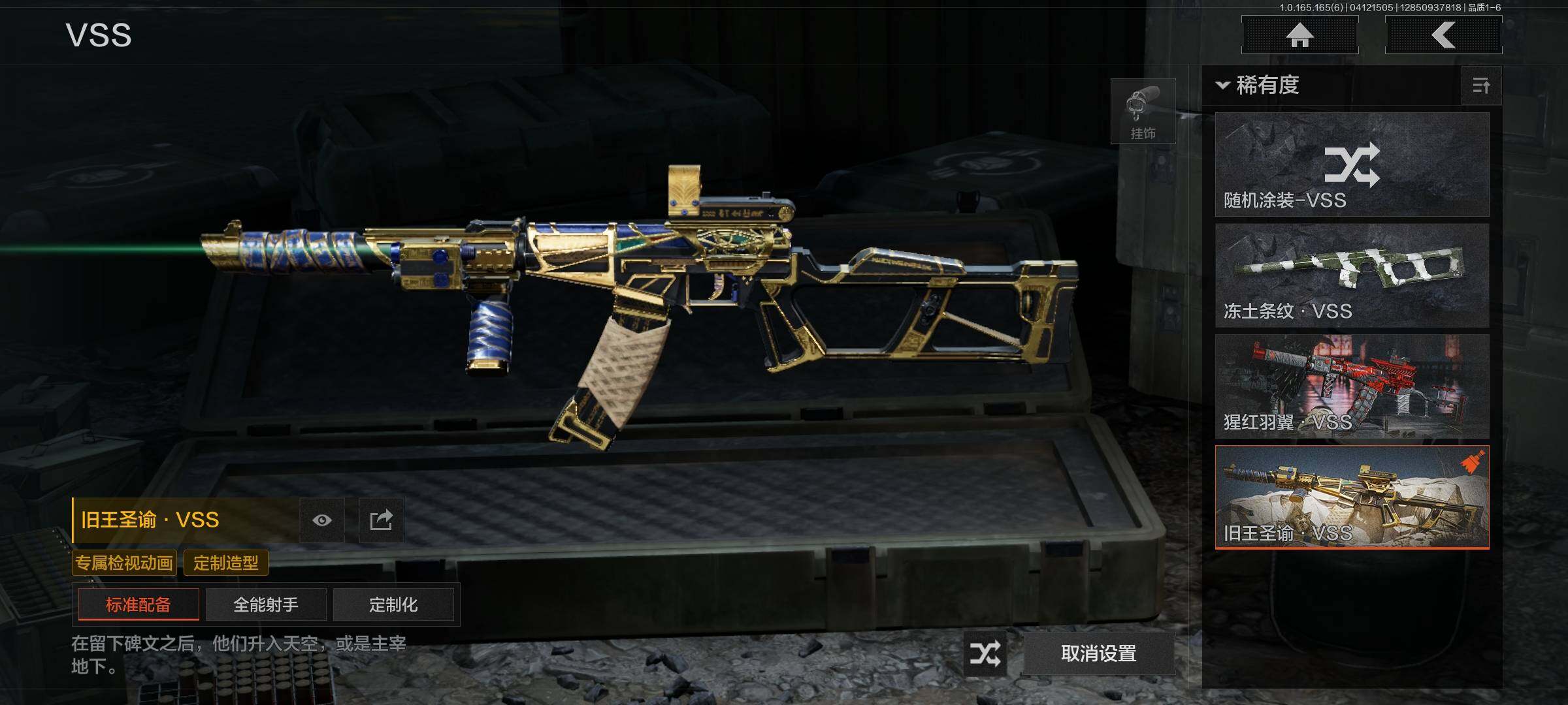 【C2610128641】【AQD348】段位:精英/仓库价值(百万):22/旧王圣谕QBZ191/旧王圣谕VSS