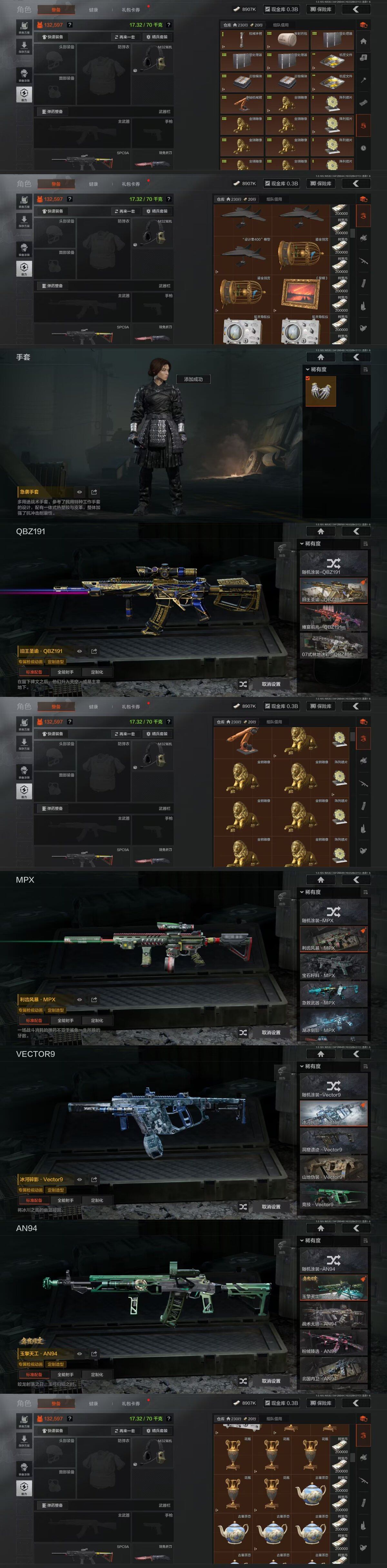 【C2610185832】【AQZG2162】等级:30/段位:新锐/仓库价值(百万):409.3/柯恩币:8907/急袭手套/工兵铲/来战·开山刀/瑞兔折刀/精英指虎/急袭弯刀/明刀·绣春/涂鸦利刃/下弦月/瀚星斩铁/赢家匕首/苍穹利爪/空腔战术/百炼恒常/幽燕钛玄/赤火炉心/掠影马来剑/战术甲胄/白蔷薇斯黛拉/地脉深处FAL/镀火熔金H416/玉擎天工AN94/百锻铁骑AEK/旧王圣谕QBZ191/利齿风暴MPX/冰河碎影Vector9/战术大师T03/清影/芭斯特/长夜千军武将/SORMK14/冲刺极限QBZ192
