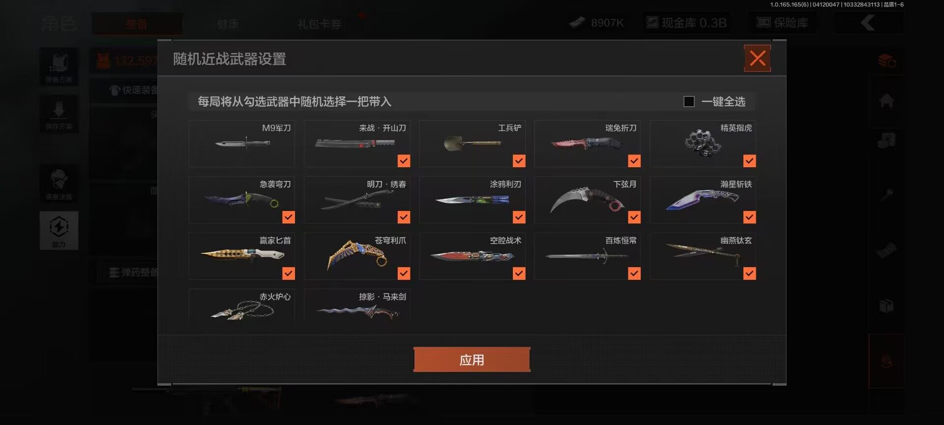 下弦月,精英指虎,来战·开山刀,工兵铲,瑞兔折刀,急袭弯刀,明刀·绣春,涂鸦利刃