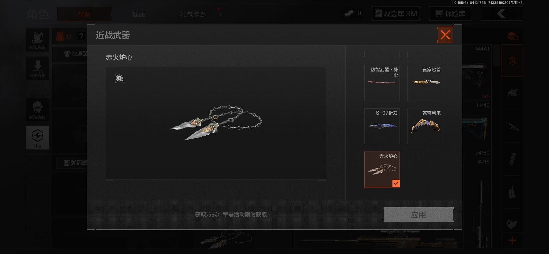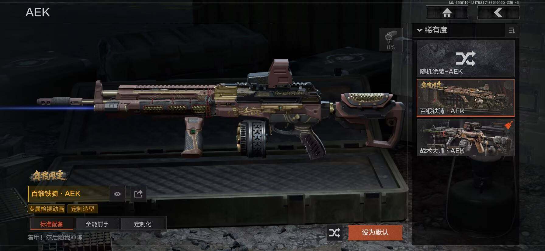 【C2610178454】【AQZG2168】等级:30/段位:专家/仓库价值(百万):9.7/柯恩币:3015082/赤火炉心/苍穹利爪/S-07折刀/赢家匕首/热能武器补牢/白蔷薇斯黛拉/战术大师AEK/百锻铁骑AEK/利齿风暴MPX/旧王圣谕VSS/千炼铁阵MK14/长夜千军武将