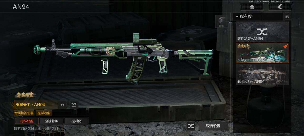 【C2610210876】【AQQH1215】段位:专家/空腔战术/工兵铲/玉擎天工AN94/玉擎天工MP5/骑士之剑VSS/旧王圣谕VSS/利齿风暴MPX/战术大师AN94/清影