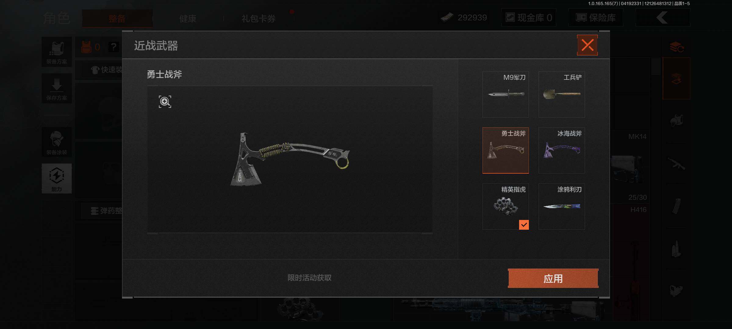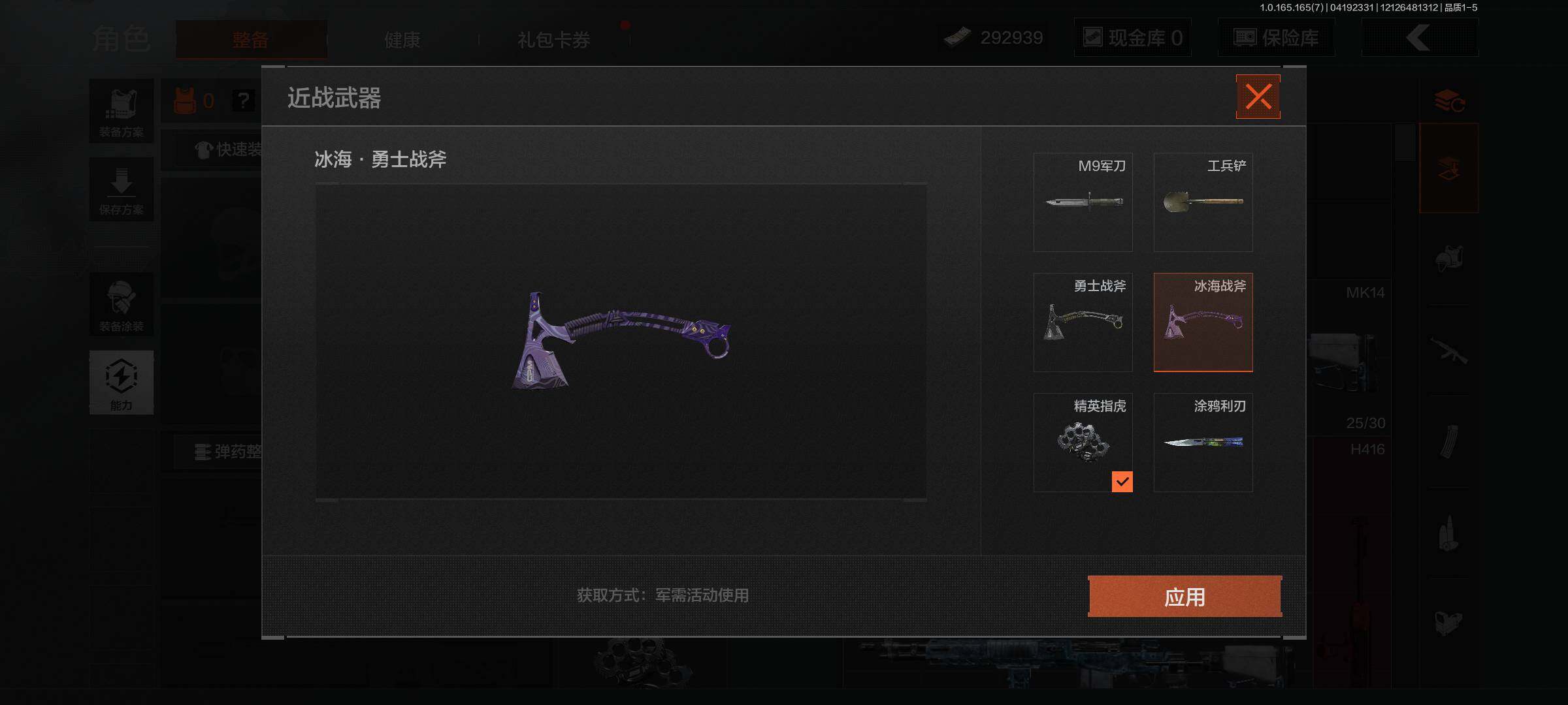精英指虎,工兵铲,冰海战斧,涂鸦利刃