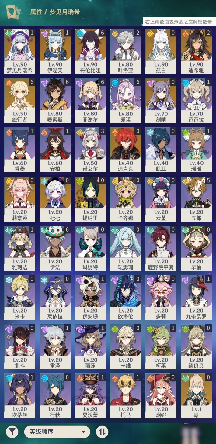 【C2610969744】[18887085]0BF1HJ不送邮/死邮总黄数24角色数量9武器数量3冒险等级58女主 【满命5星角色1个】满命哥伦比娅, 【二命5星角色1个】二命迪希雅, 【一命5星角色2个】一命梦见月瑞希,一命伊涅芙, 【5星角色5个】提纳里,刻晴,迪卢克,琴,七七, 【1精武器3个】狼的末路, "