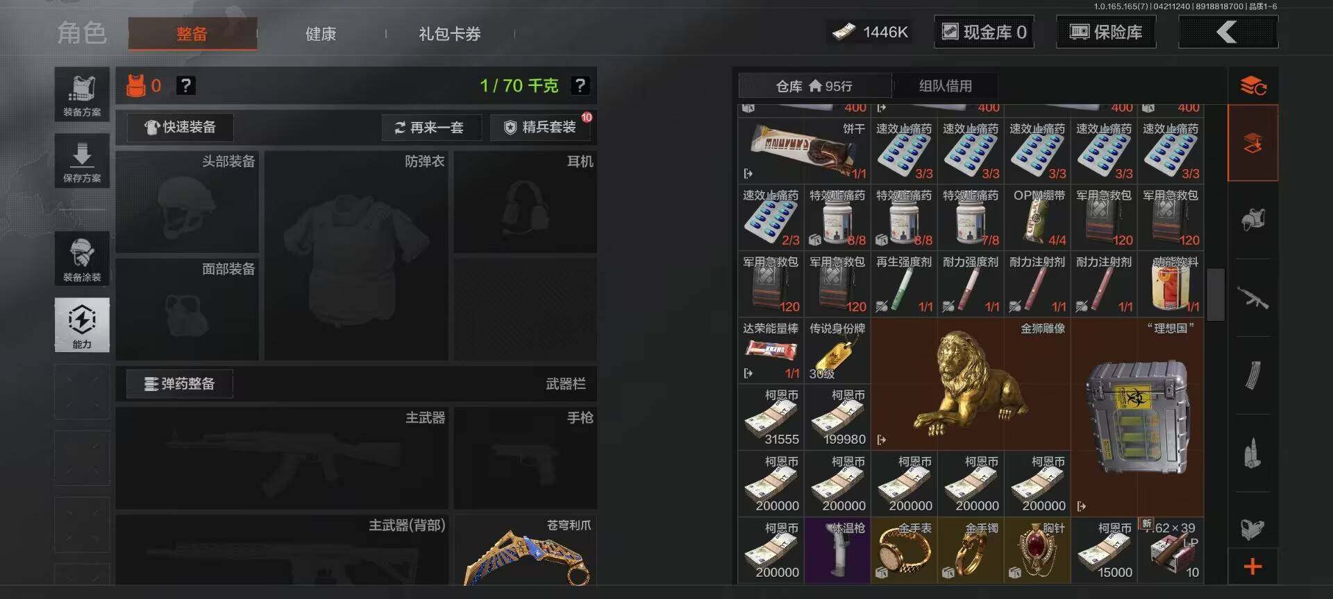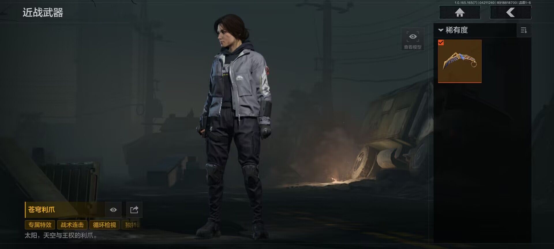 【C2611076860】【AQZG2303】等级:30/段位:新锐/仓库价值(百万):5/柯恩币:1446/苍穹利爪